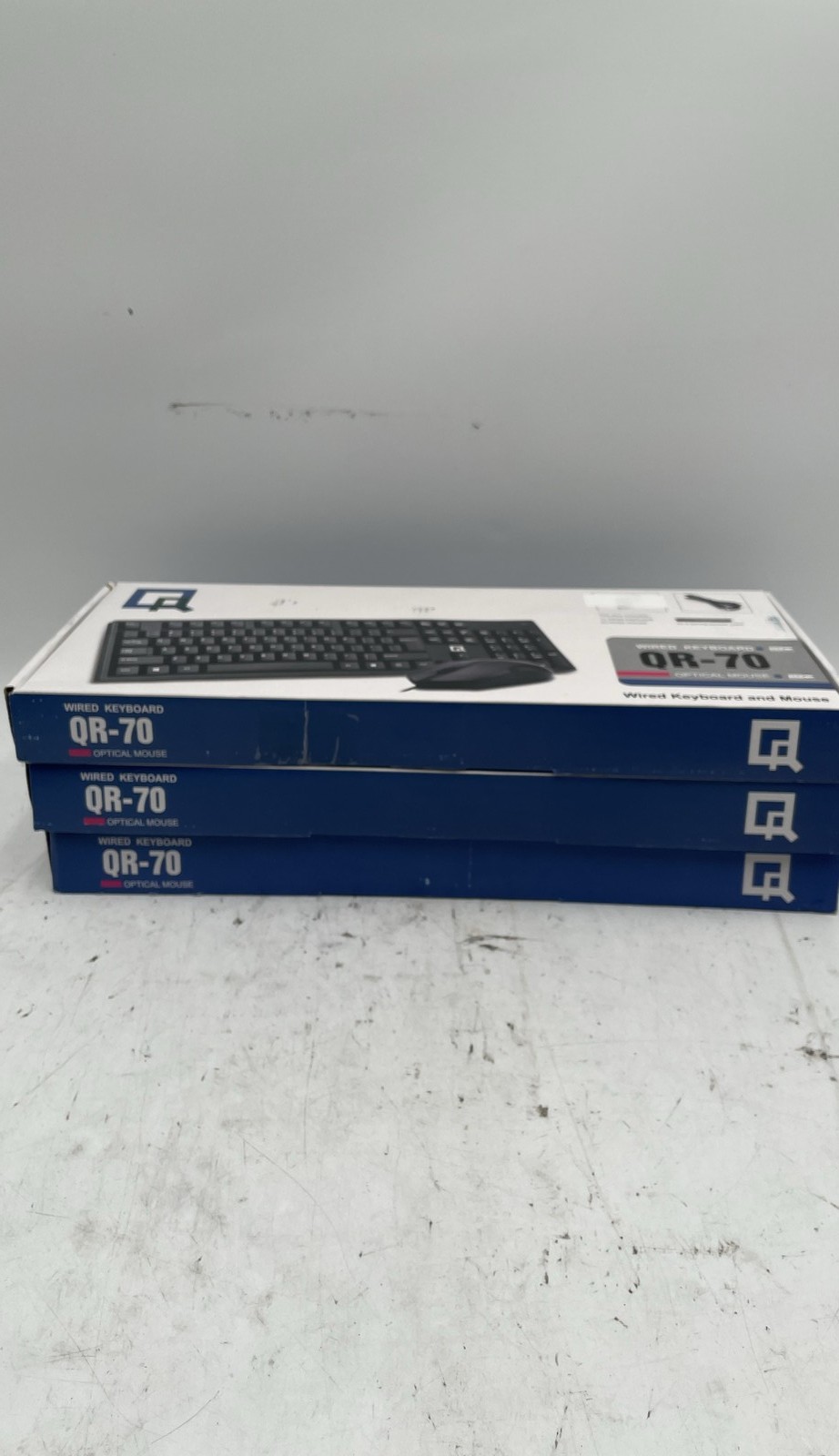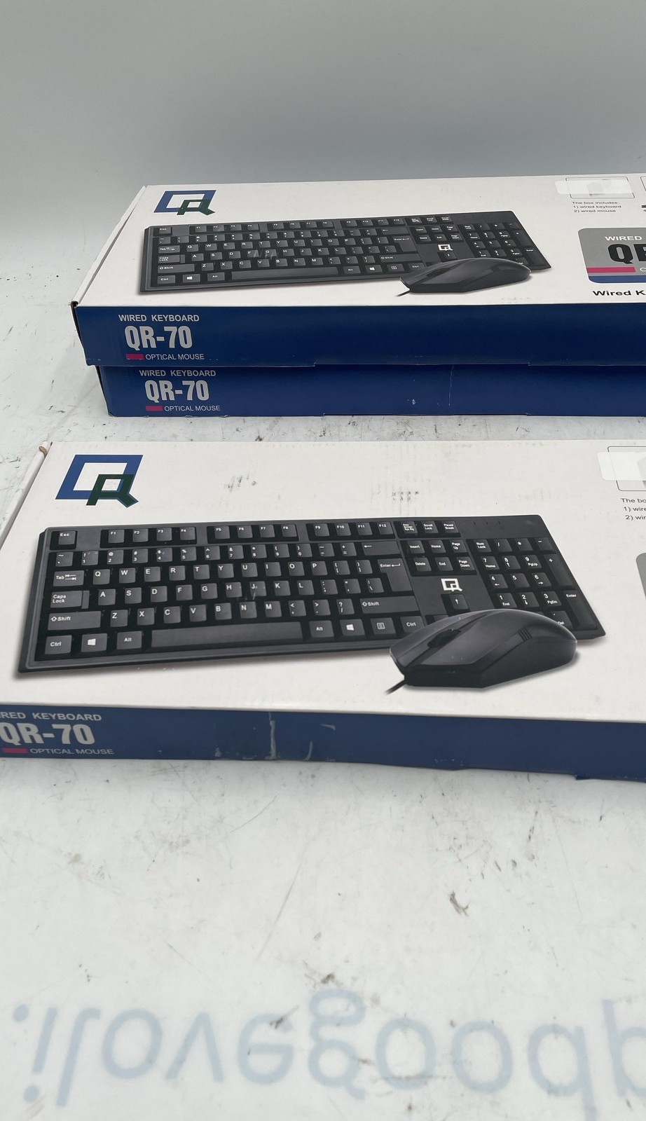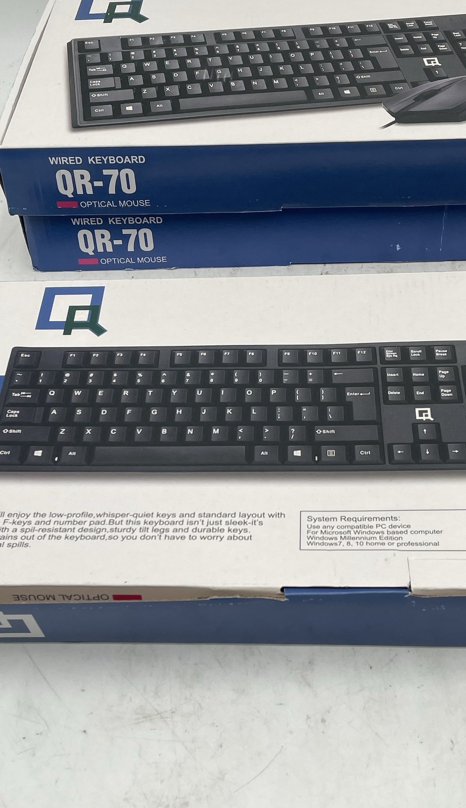 QR-70 Wired Keyboard and Mouse Combo USB Full Size Optical Mouse Lot Of 3