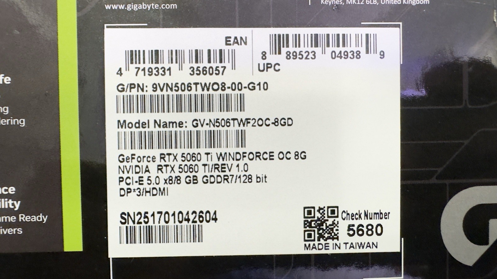 Chipset/GPU Model: GeForce RTX 5060 Ti