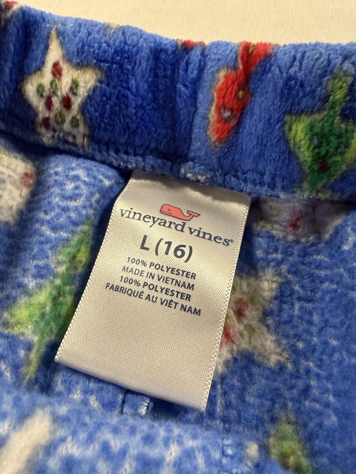 Vineyard Vines Boys High Pile PJ Pajama Pants Size L Blue Plush Fleece
