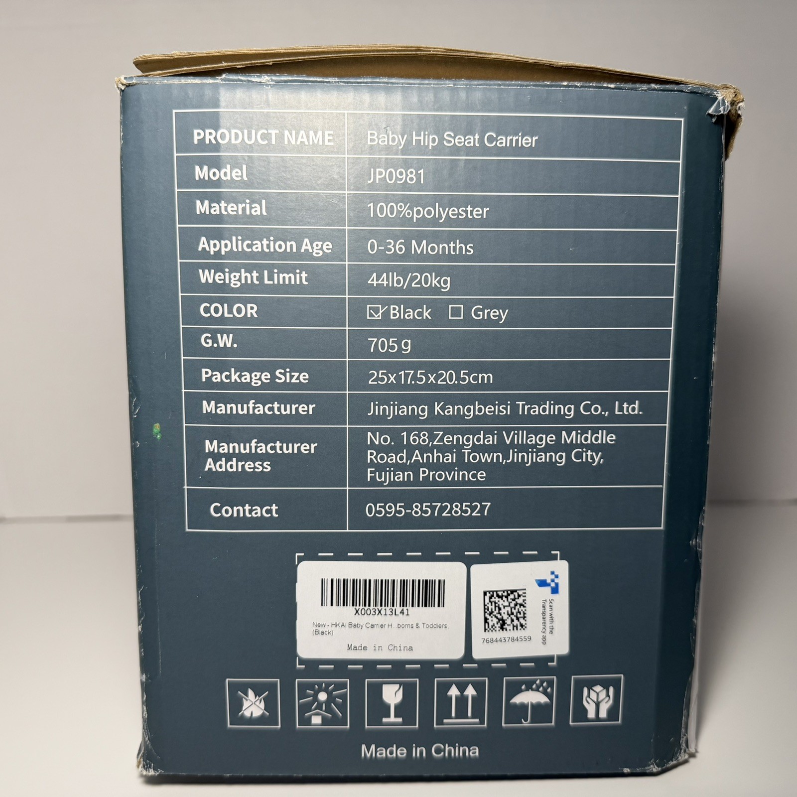 HKAI Baby Hip Carrier 7-44Ibs/3.2-20kg Adjustable Waist Black Pre-owned