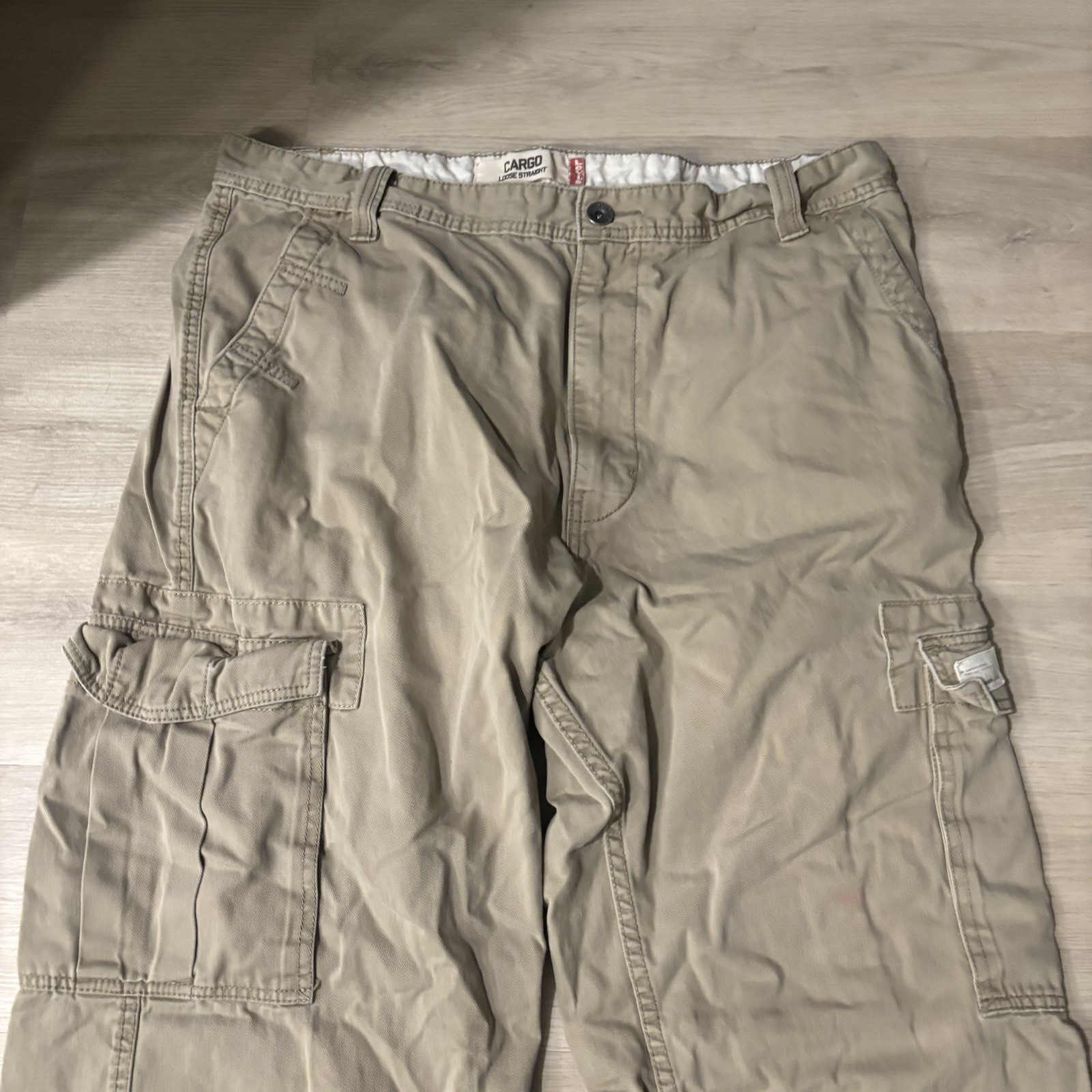 как выглядит Y2K Levis Loose Straight Cargo Pants Mens TAG 38x34 Beige Actual 37x33 baggy фото