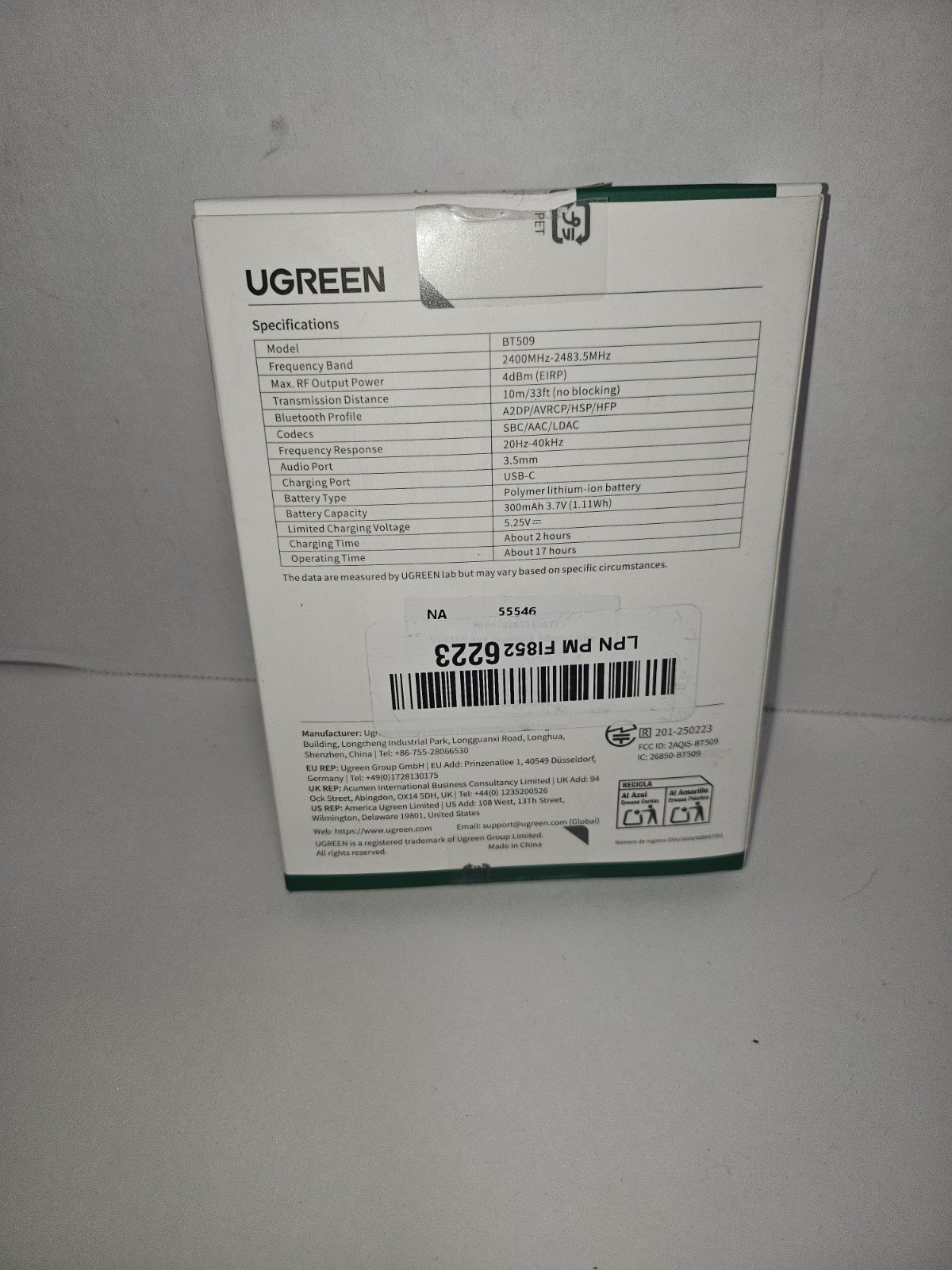 Certification: CE, FCC, IC, RoHS, UKCA, SRRC, TELEC