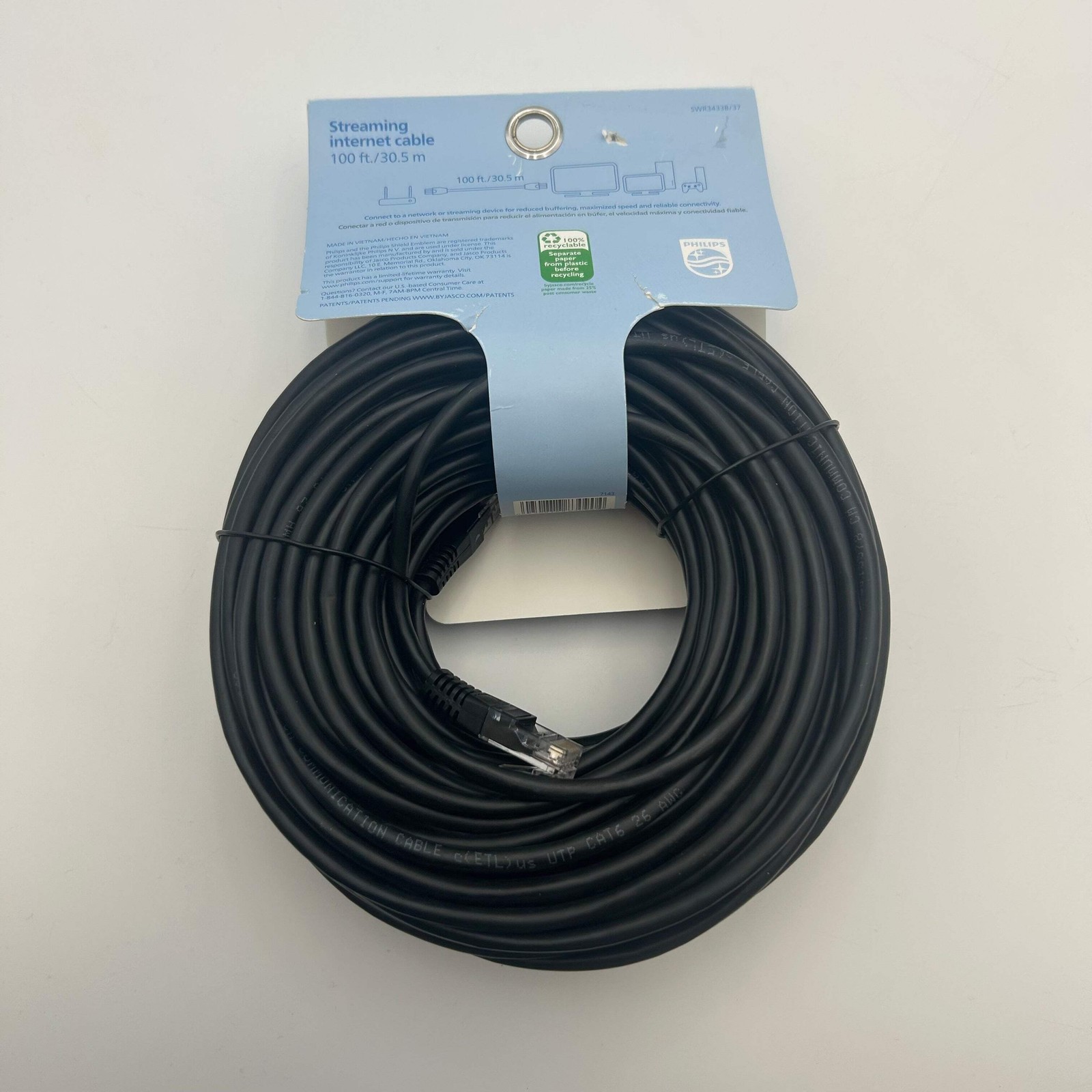 Philips 100 ft CAT6 Ethernet Cable Black New In Box