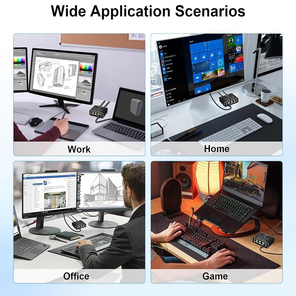 RJ45 Gigabit Ethernet Splitter 1000Mbps LAN Network Internet 1 to 4 Out Adapter