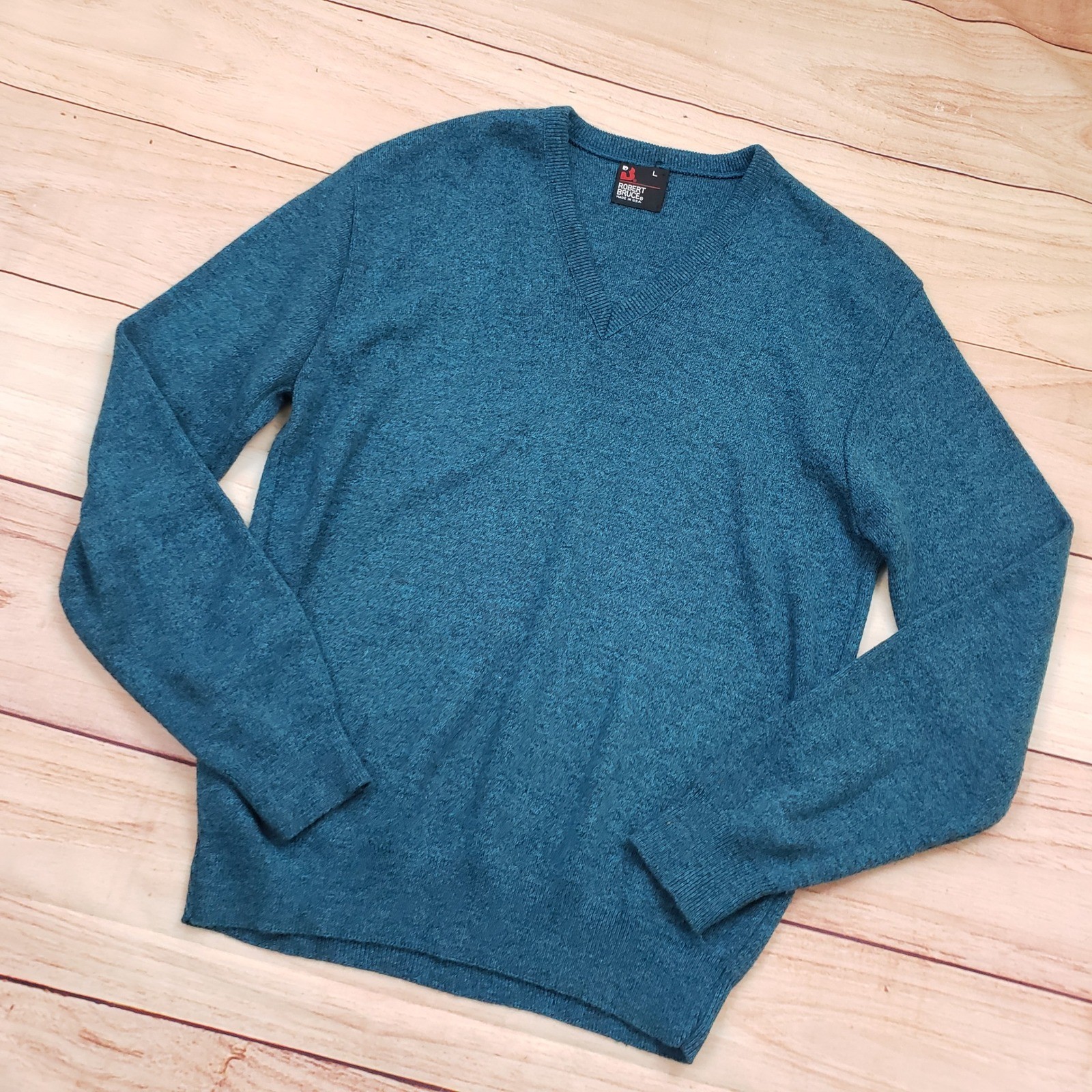 Robert Bruce Sweater Mens Large Blue Pullover V-Neck Long Sleeve Knit Adult