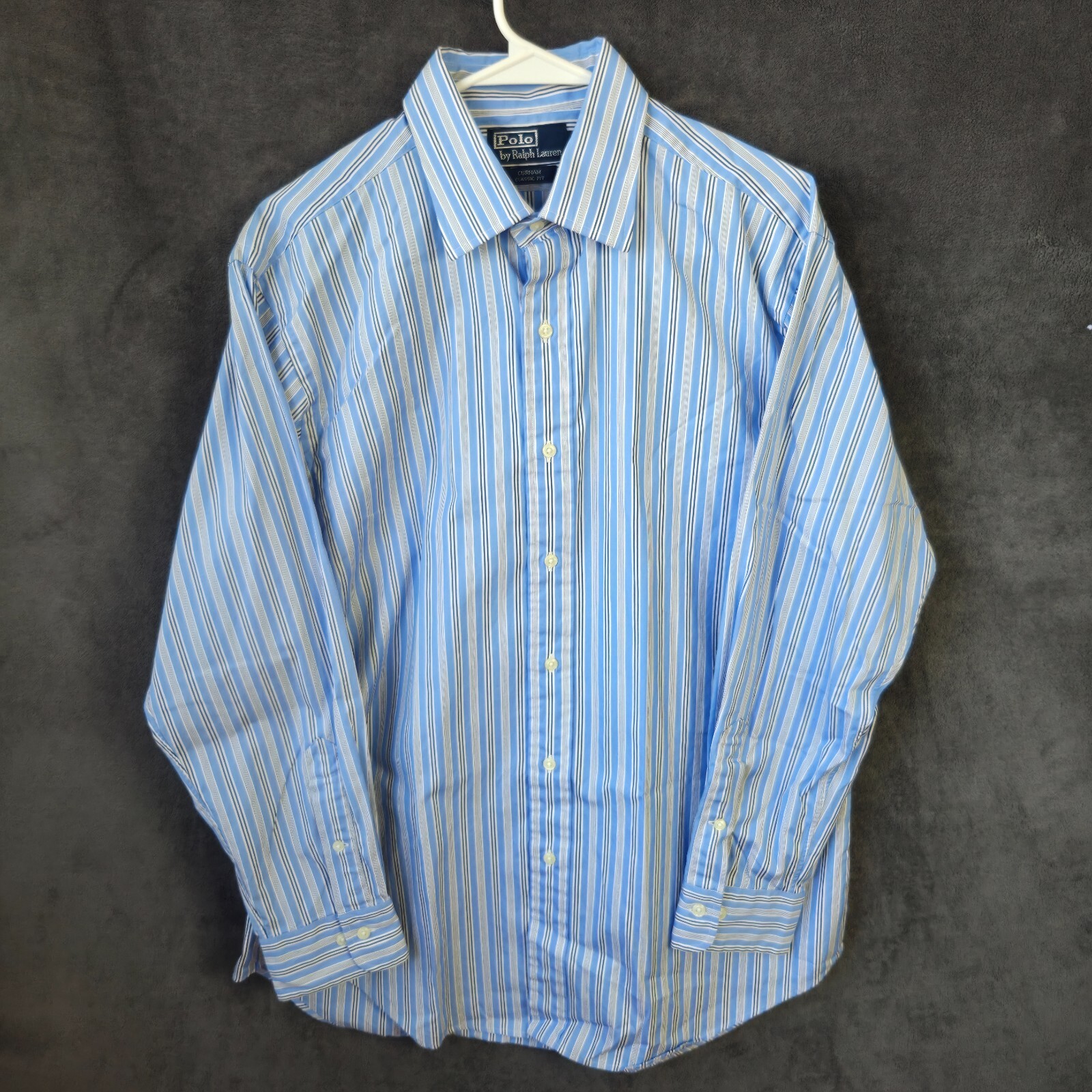 Polo Ralph Lauren Shirt Men 16-32/33 Classic Blue Stripe Long Sleeve Button Up