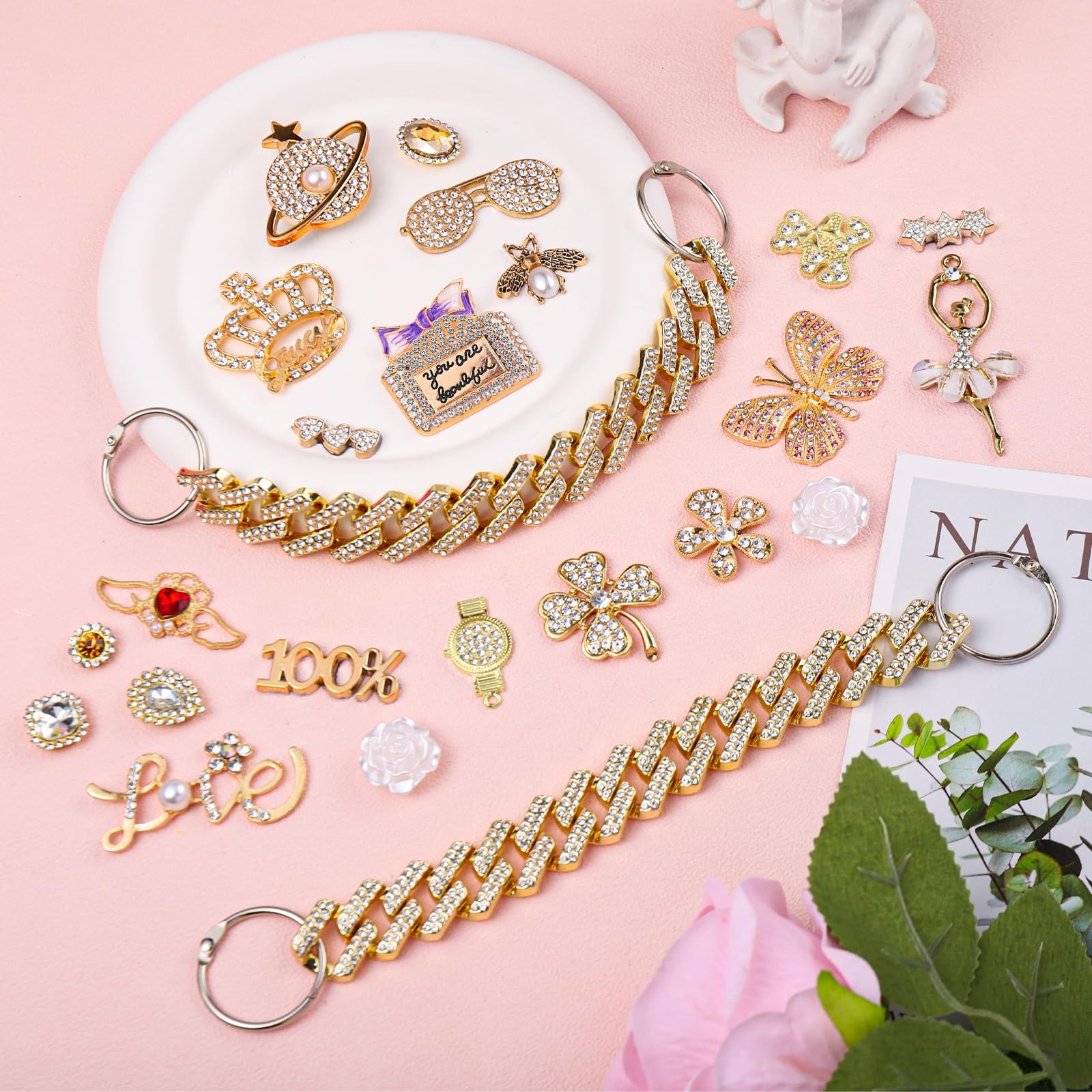 QAUYETM 24Pcs Shoe Charms for Women Girls,Gold Bling GOLD