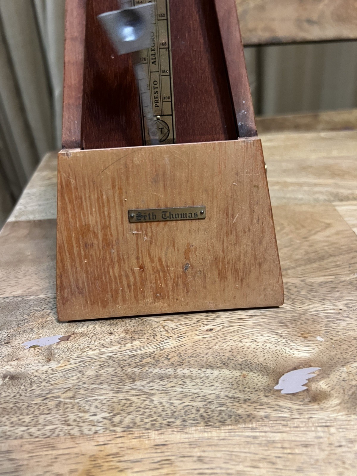 как выглядит Vintage 1940s Seth Thomas Metronome De Maelzel WoodMade In USA Works фото
