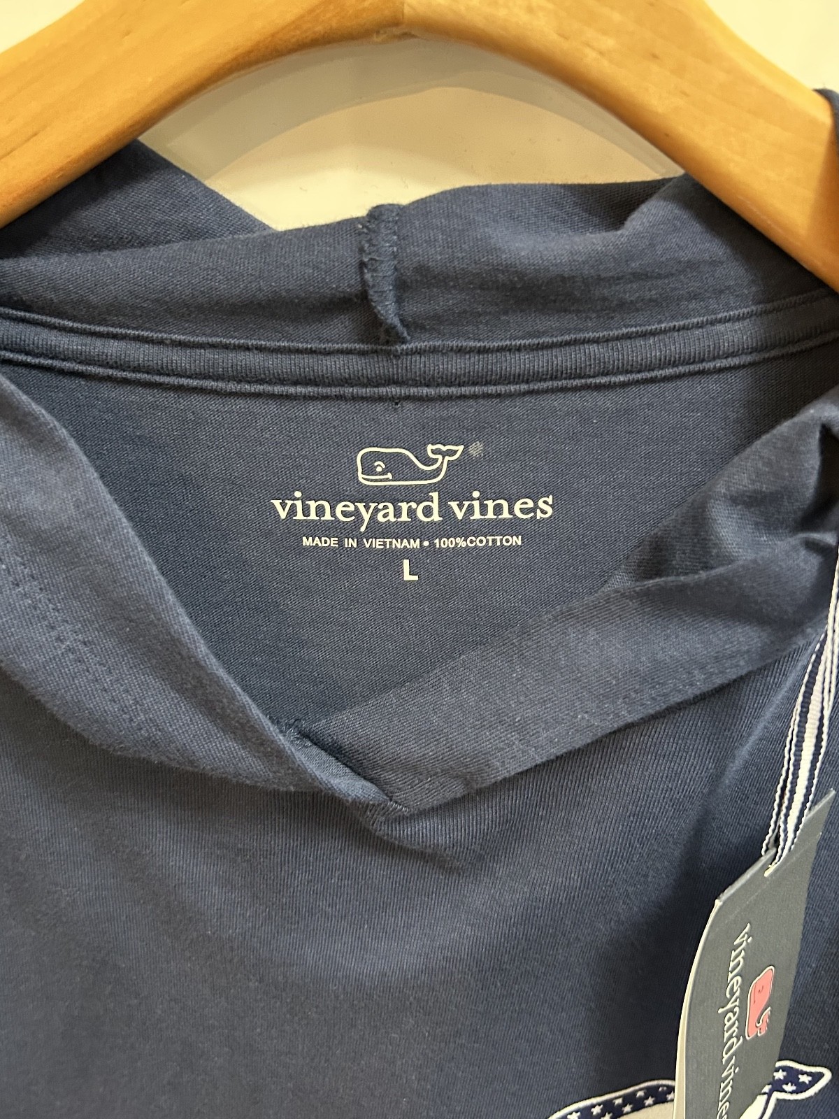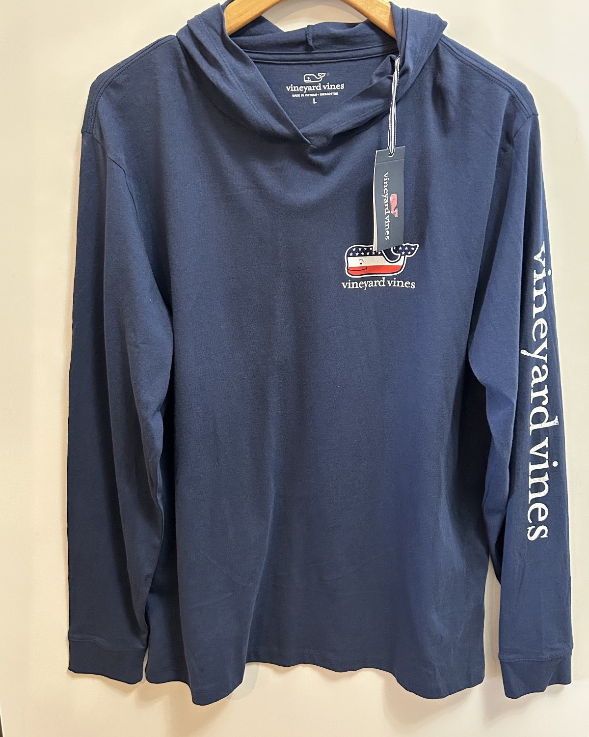 как выглядит NEW Vineyard Vines Mens USA Flag Whale Hoodie Long Sleeve T Shirt Navy L NWT B38 фото