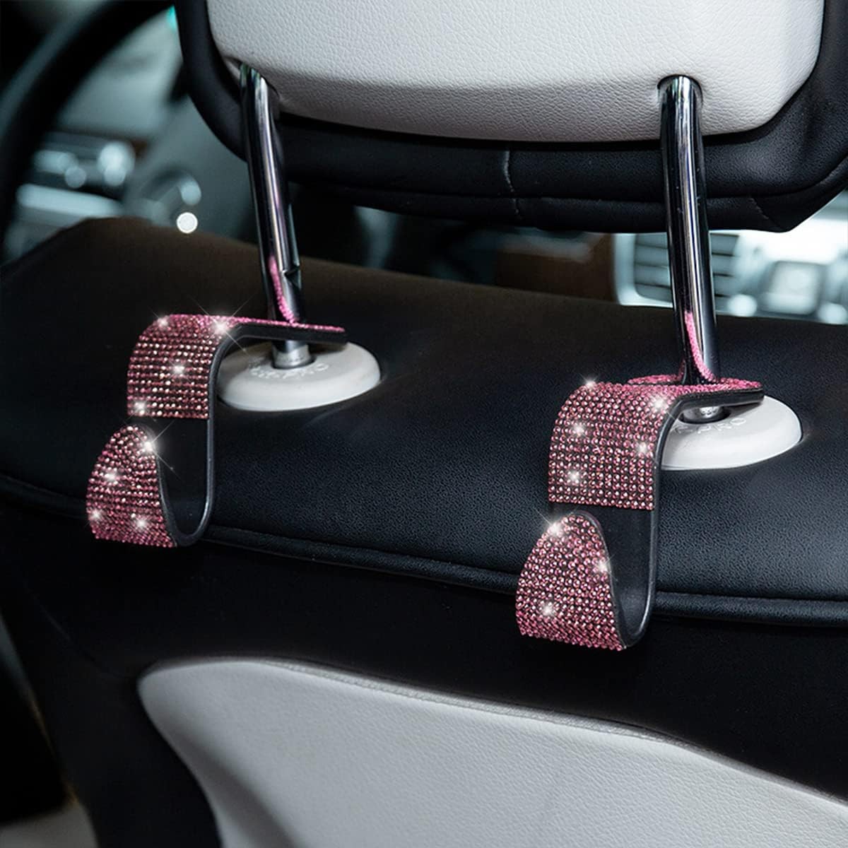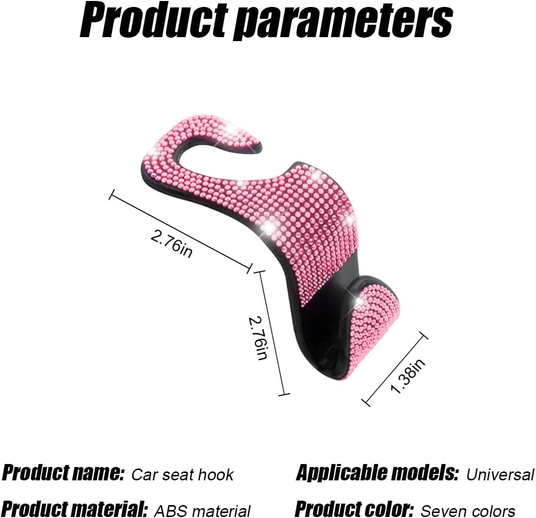 Bling Car Seat Headrest Hooks, 4PCS Handcrafted Rhinestones Seat Hanger Pink