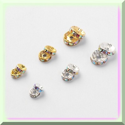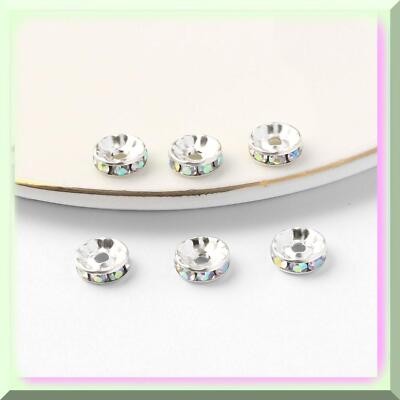 200 Pieces 6mm Silver Rhinestone Crystal Spacer Beads