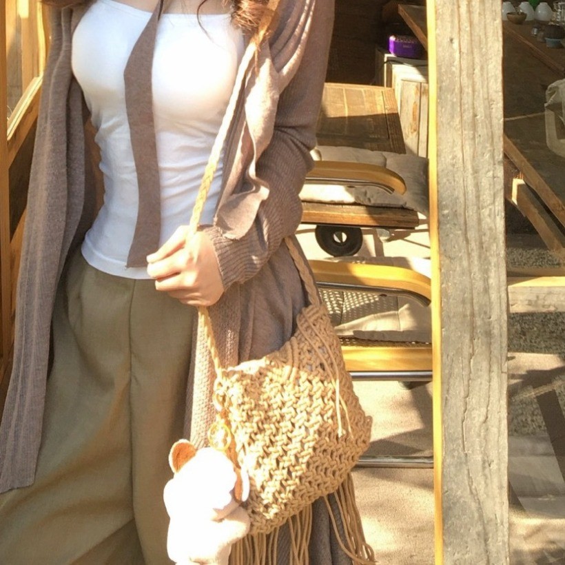 Retro Tassel Macrame Crossbody Bag Boho Vacation Purse