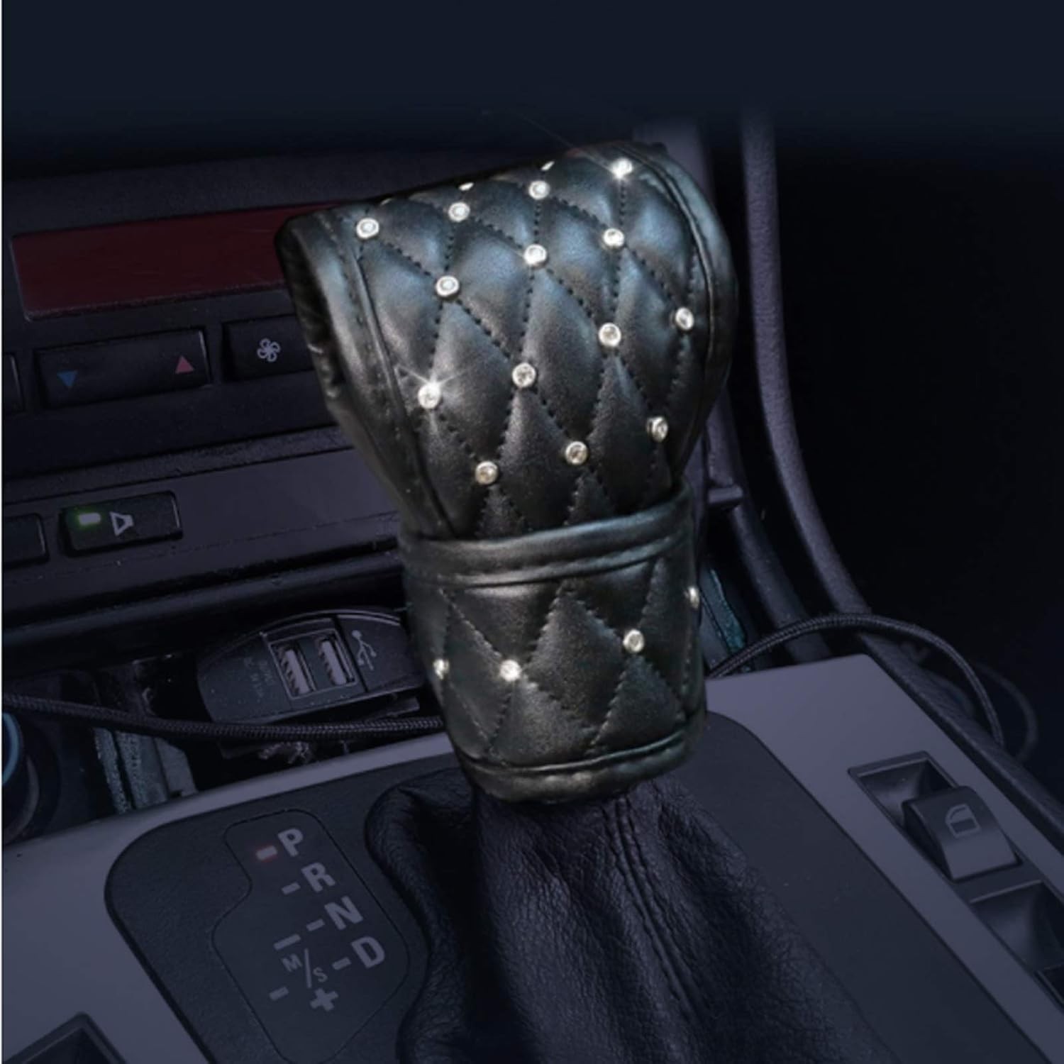 Bling Bling Auto Shift Gear Cover, Leather Auto Gear Shift Knob B-Black