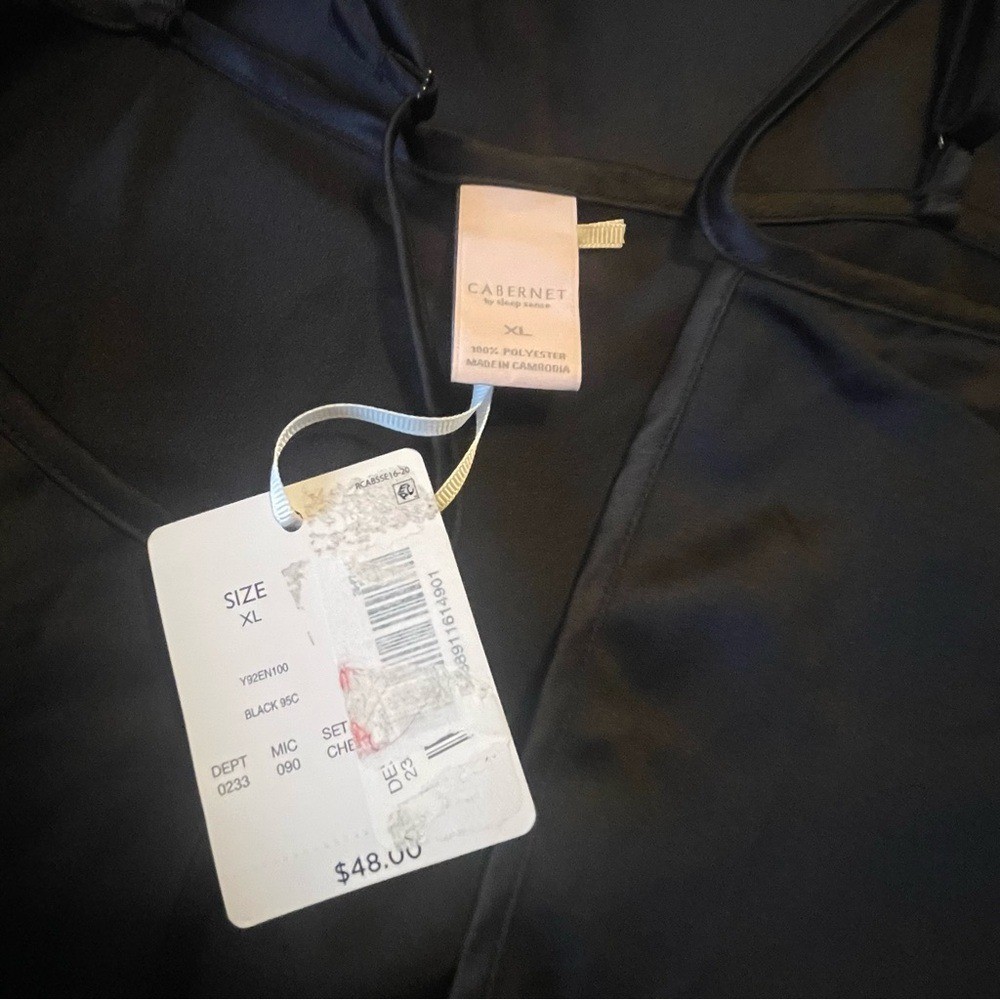 Cabernet NWT black long negligee nightgown intimates spaghetti straps size XL