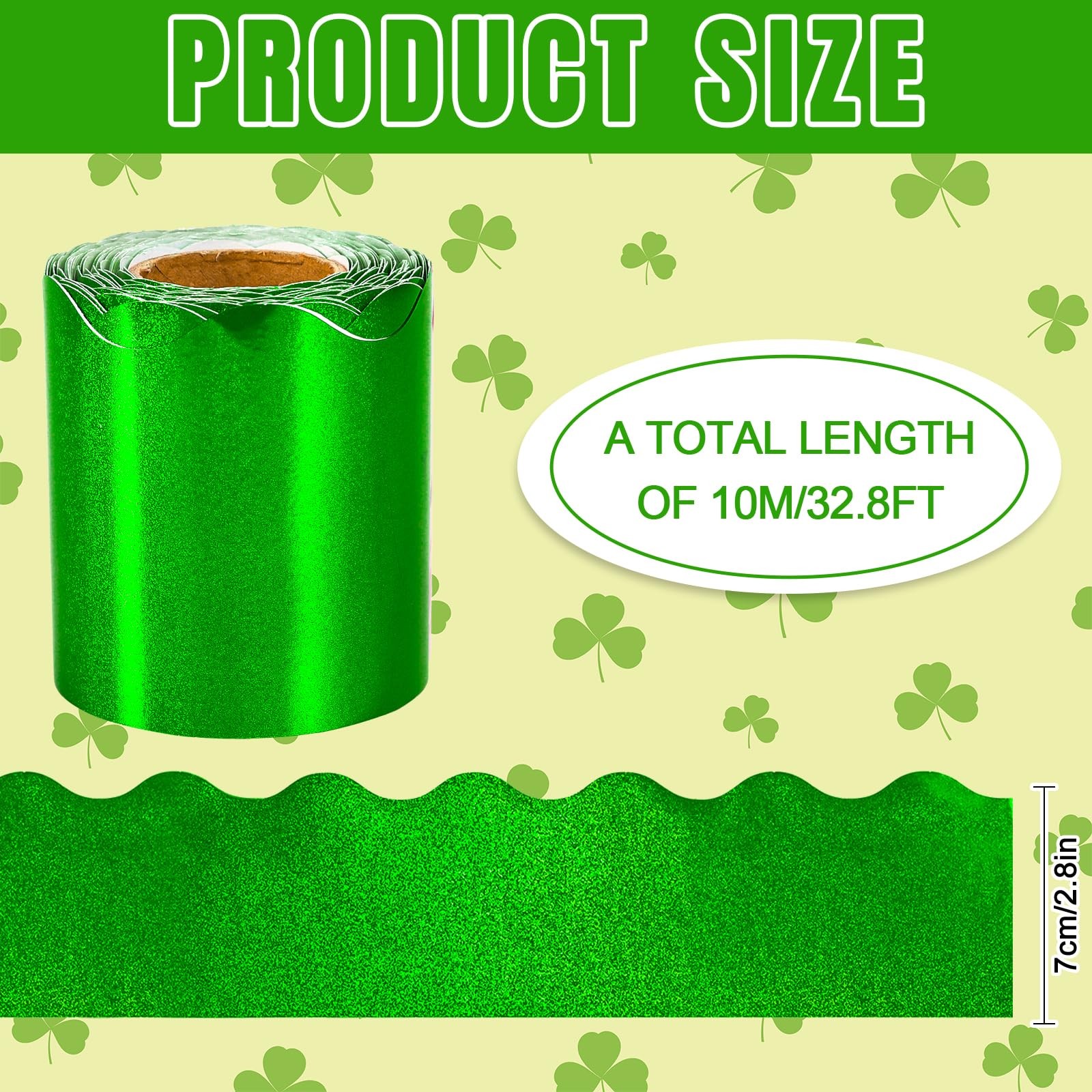 как выглядит 32.8 Ft Green Holographic Bulletin Board Border St. Patrick