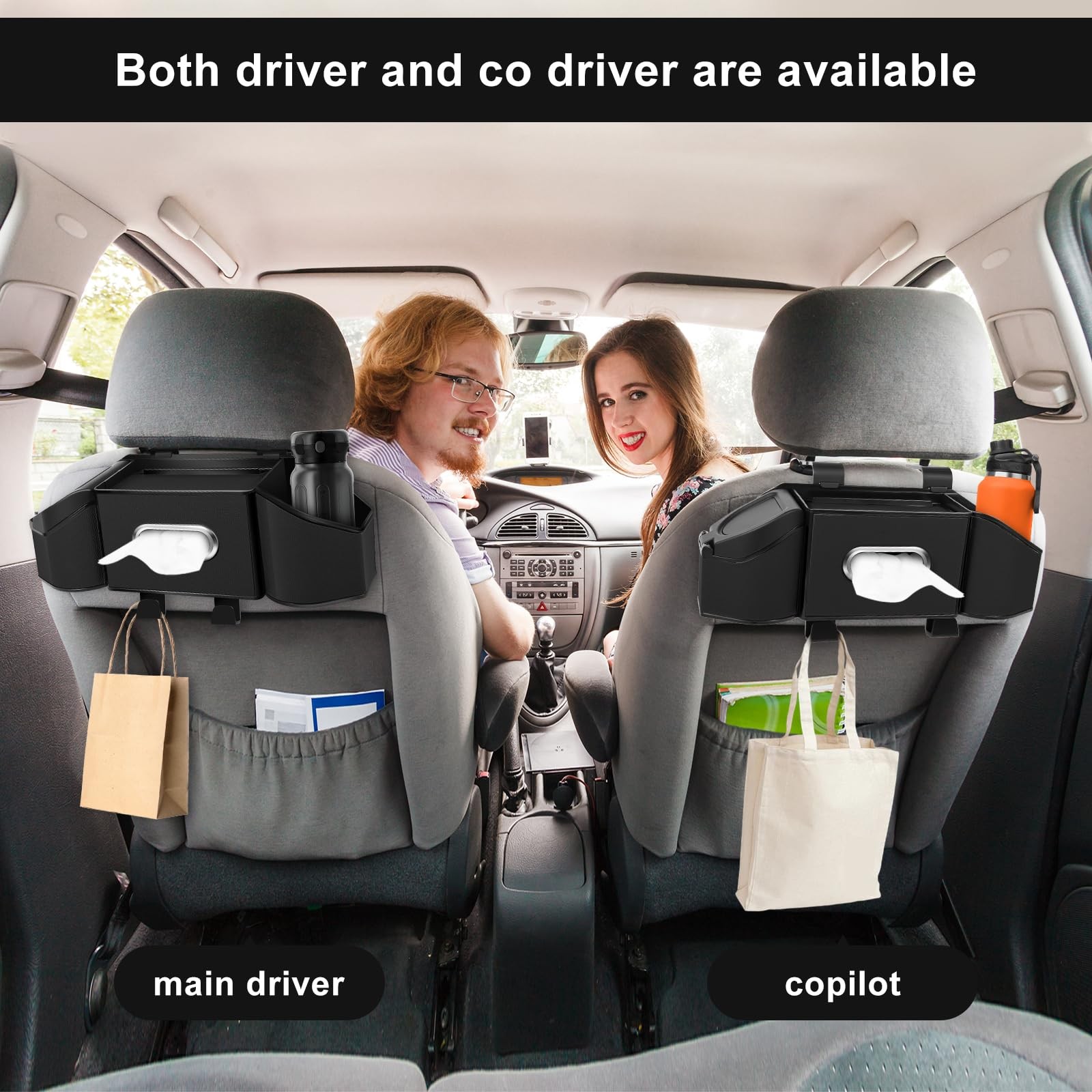 7-In-1 Car Seat Back Organizer with Cup Holders, Tissue Box, Garbage Can Hook...