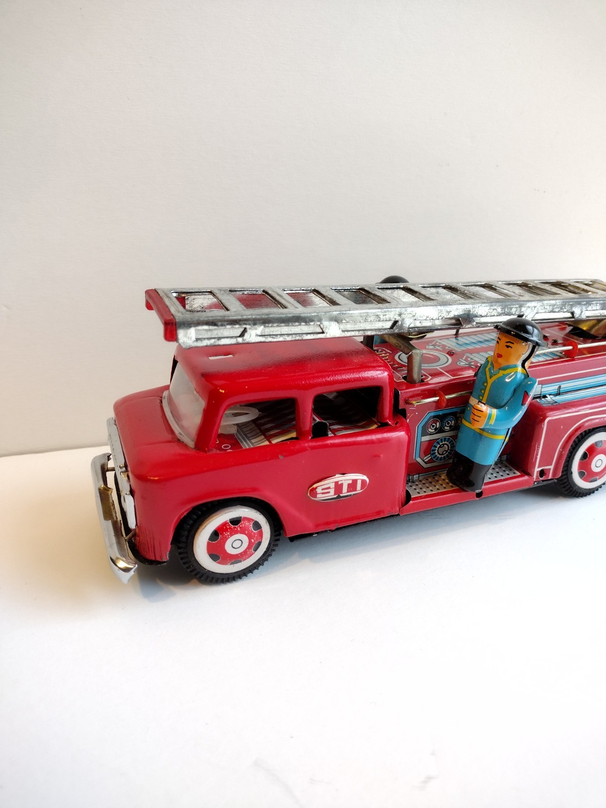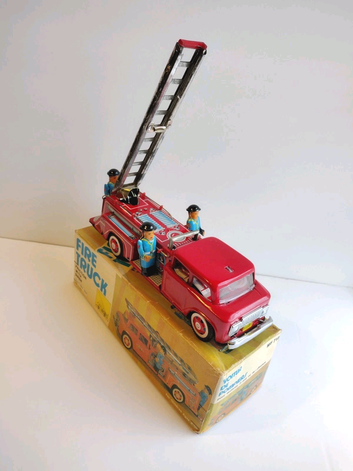 VINTAGE 10 Fire Engine Ladder Truck Friction Power With Siren Collectable Toy