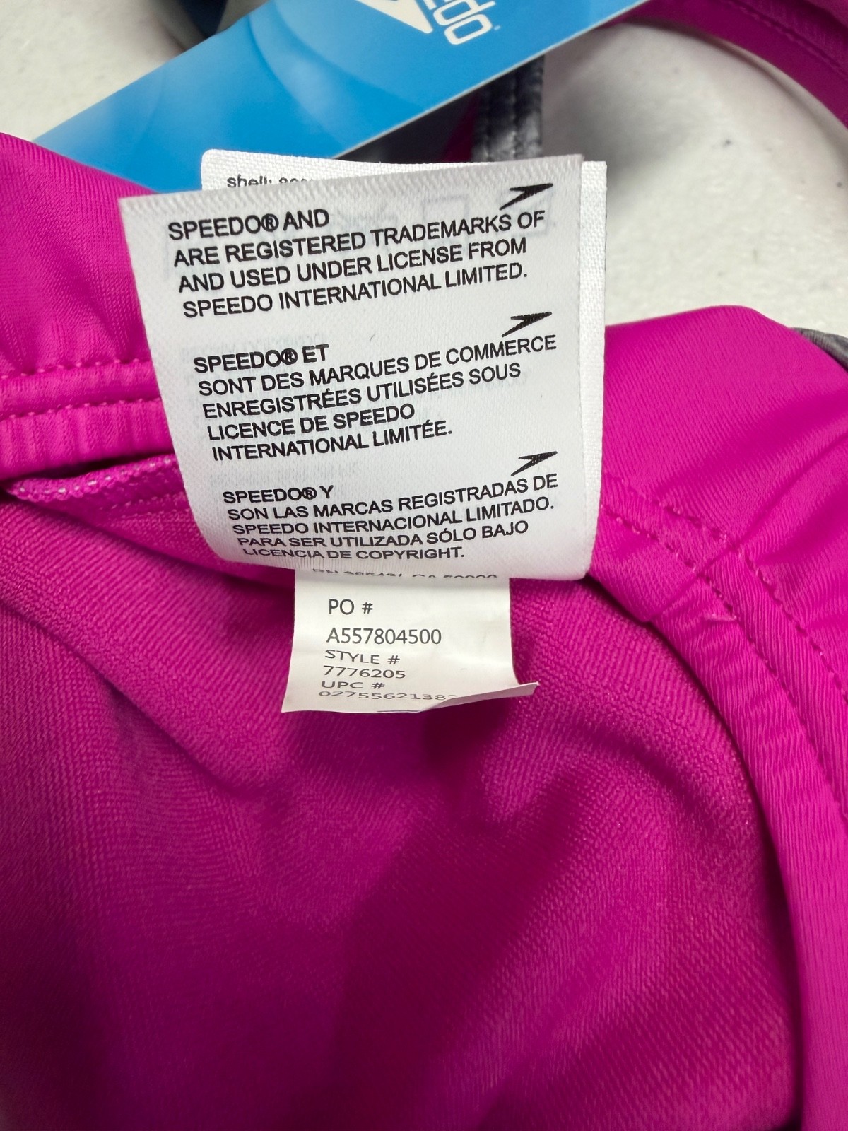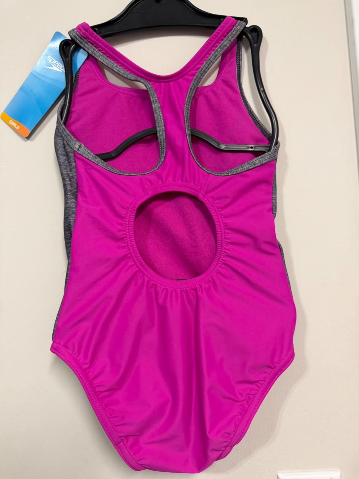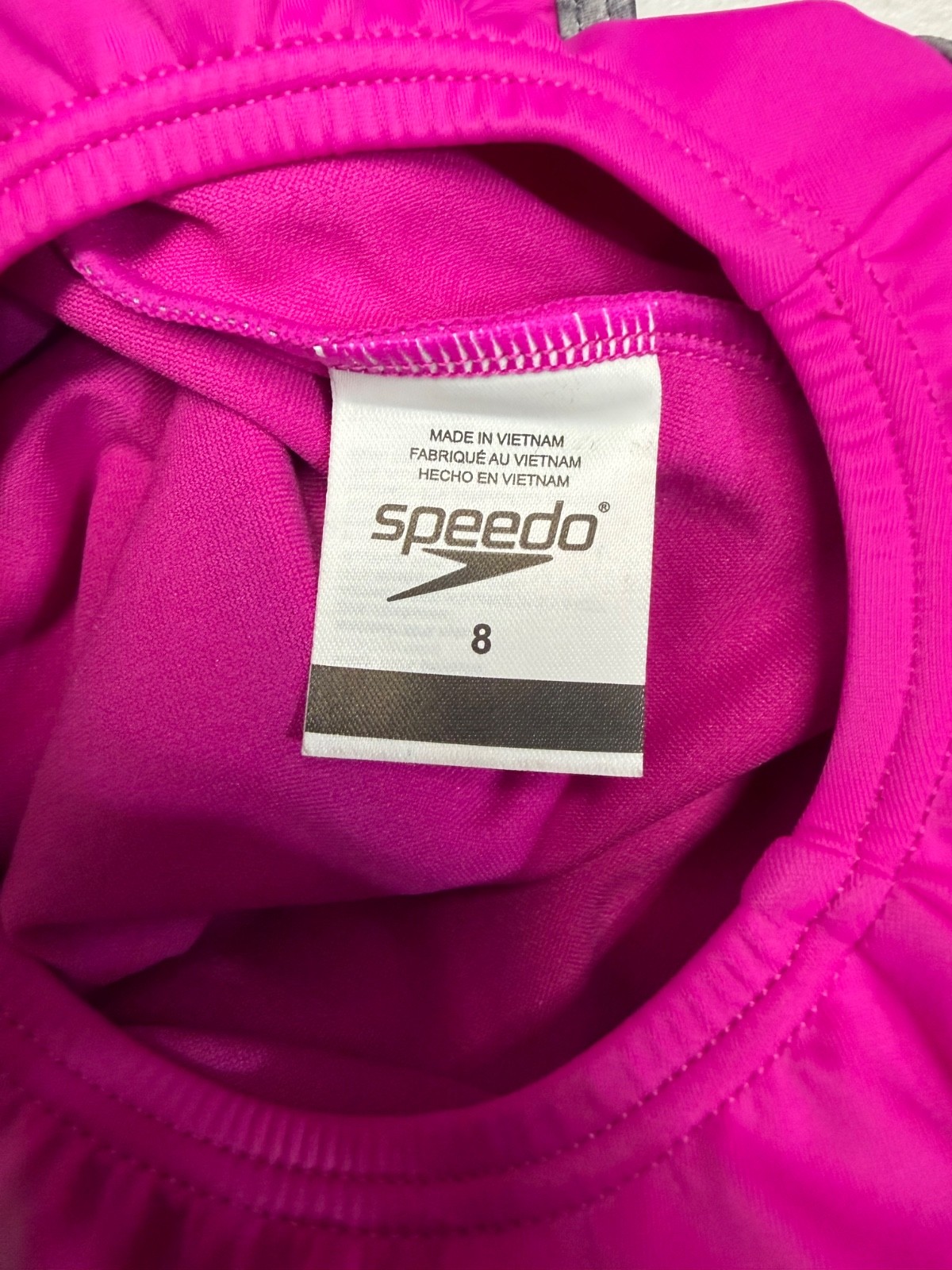 New SPEEDO Girls Size 8 Fuchsia Hot Pink Gray Racerback Sport 1 piece Swimsuit