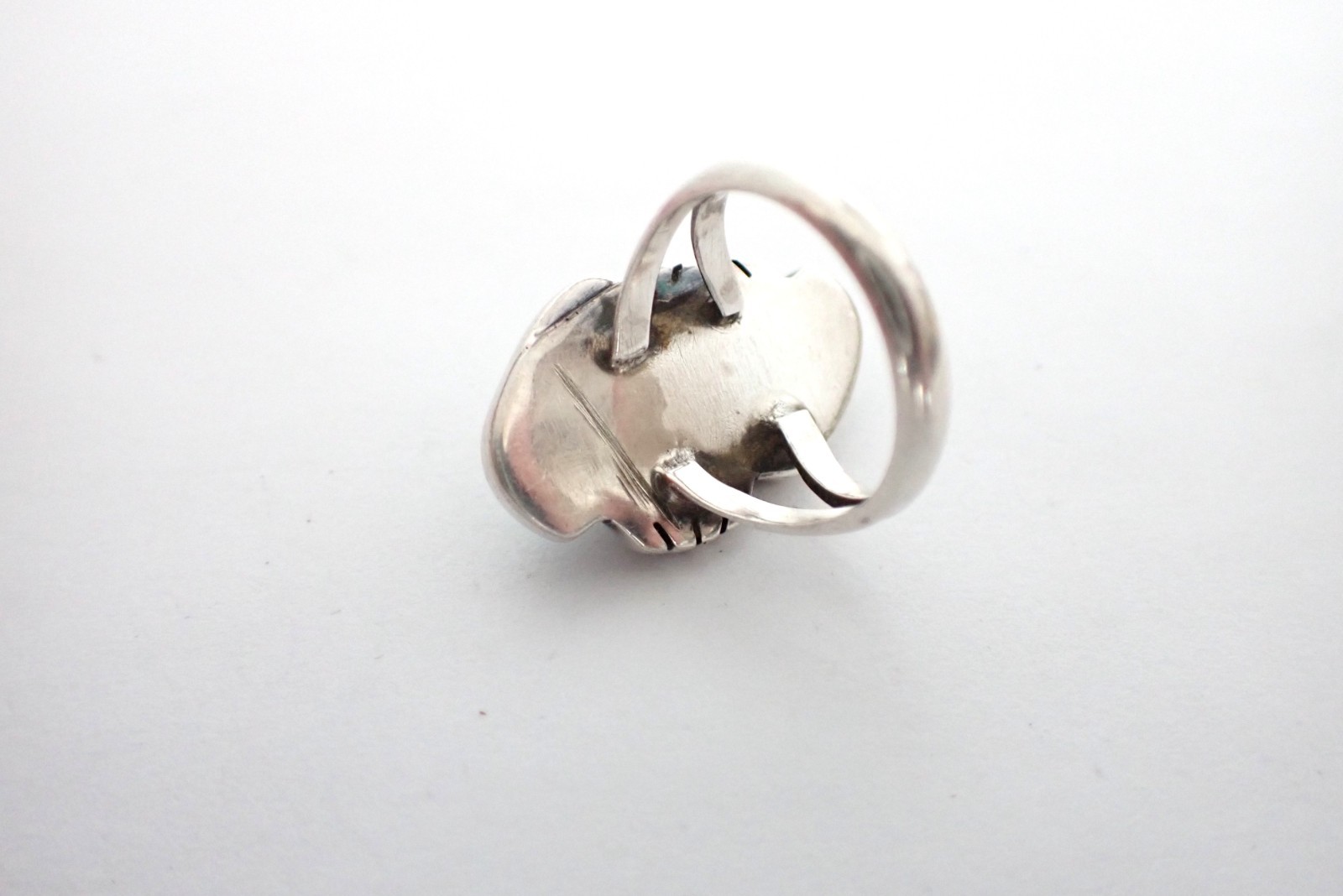 как выглядит Vintage Southwestern Sterling Silver Ring W/ Large Natural Spiderweb Turquoise фото
