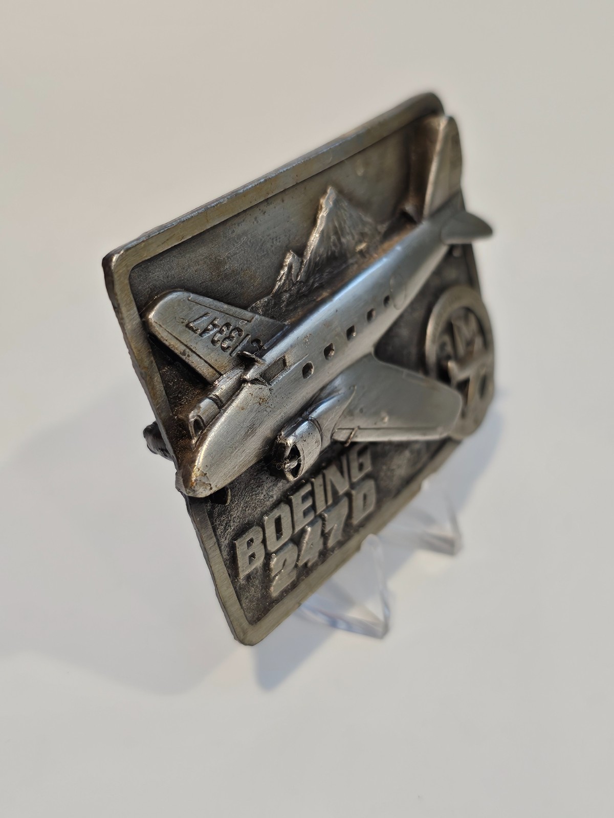 VINTAGE Boeing 247D airplane belt buckle 1985 Museum of Flight numbered 327