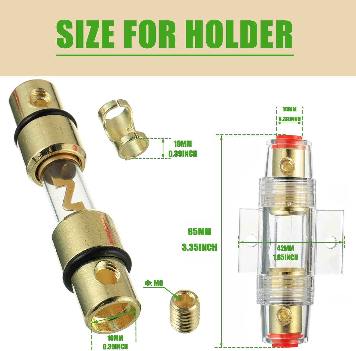 4-8 Gauge AWG in-line Fuse Holder with 50A AGU Fuses for Car Audio, Alarm-50A