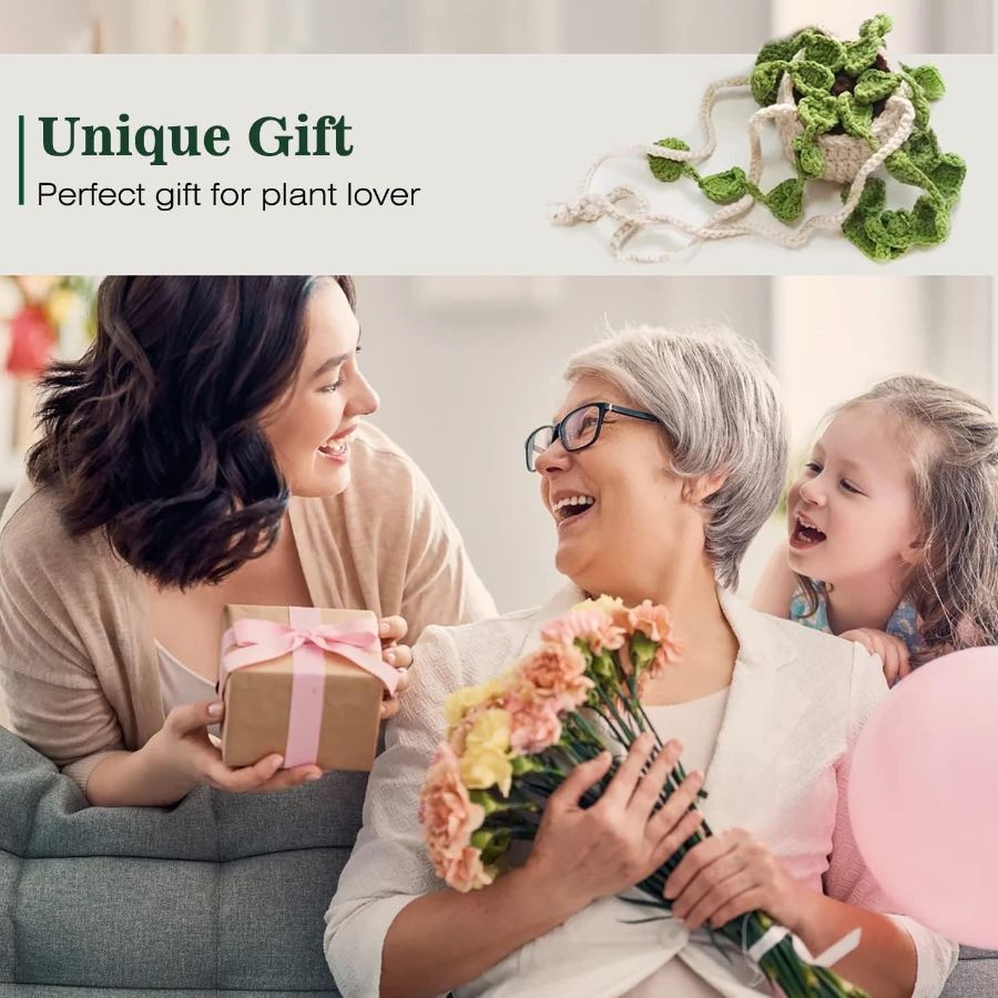 как выглядит Cute Crochet Plant for Rear View Mirror, Handmade Car Mirror Hanging Accessory f фото