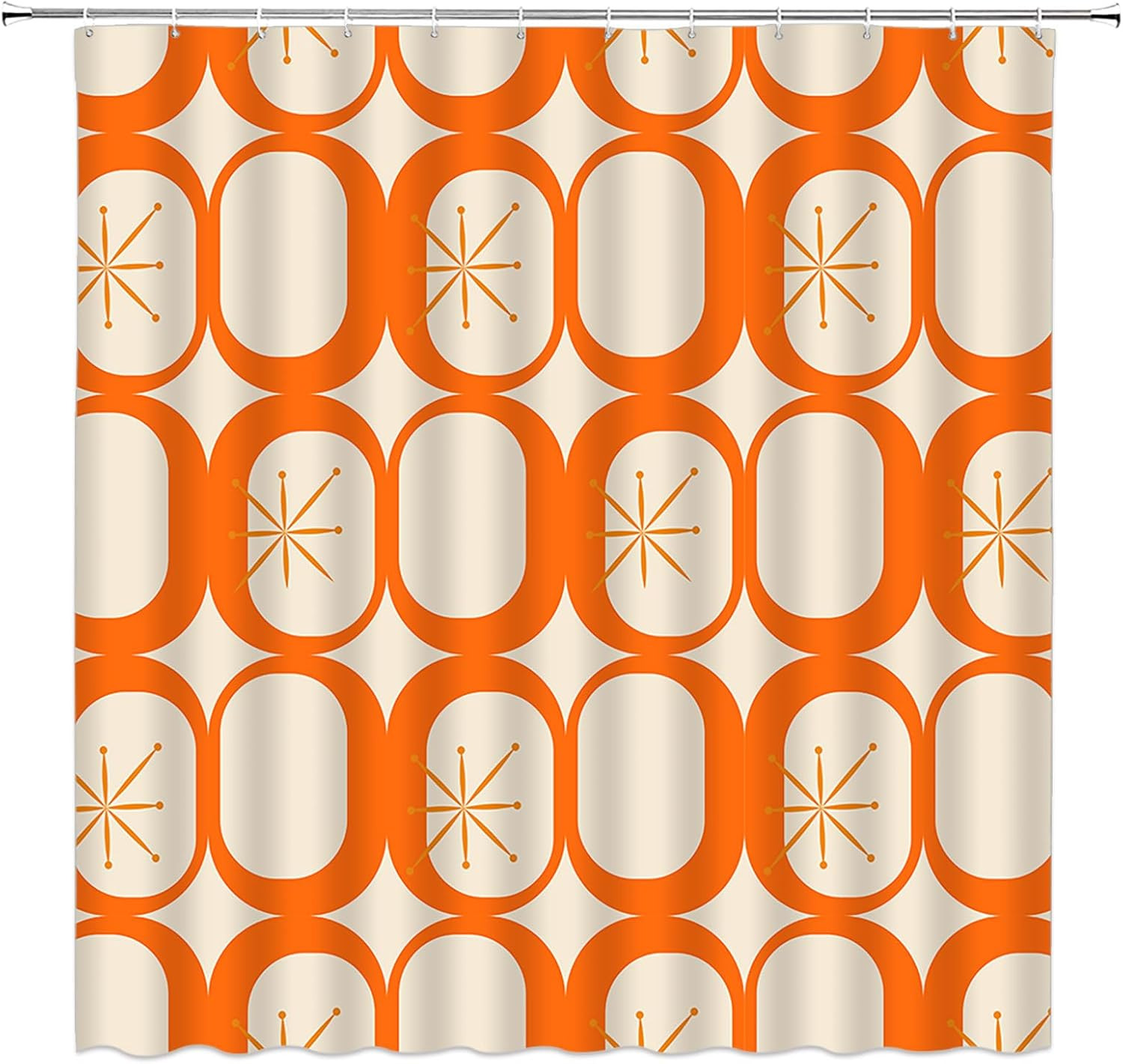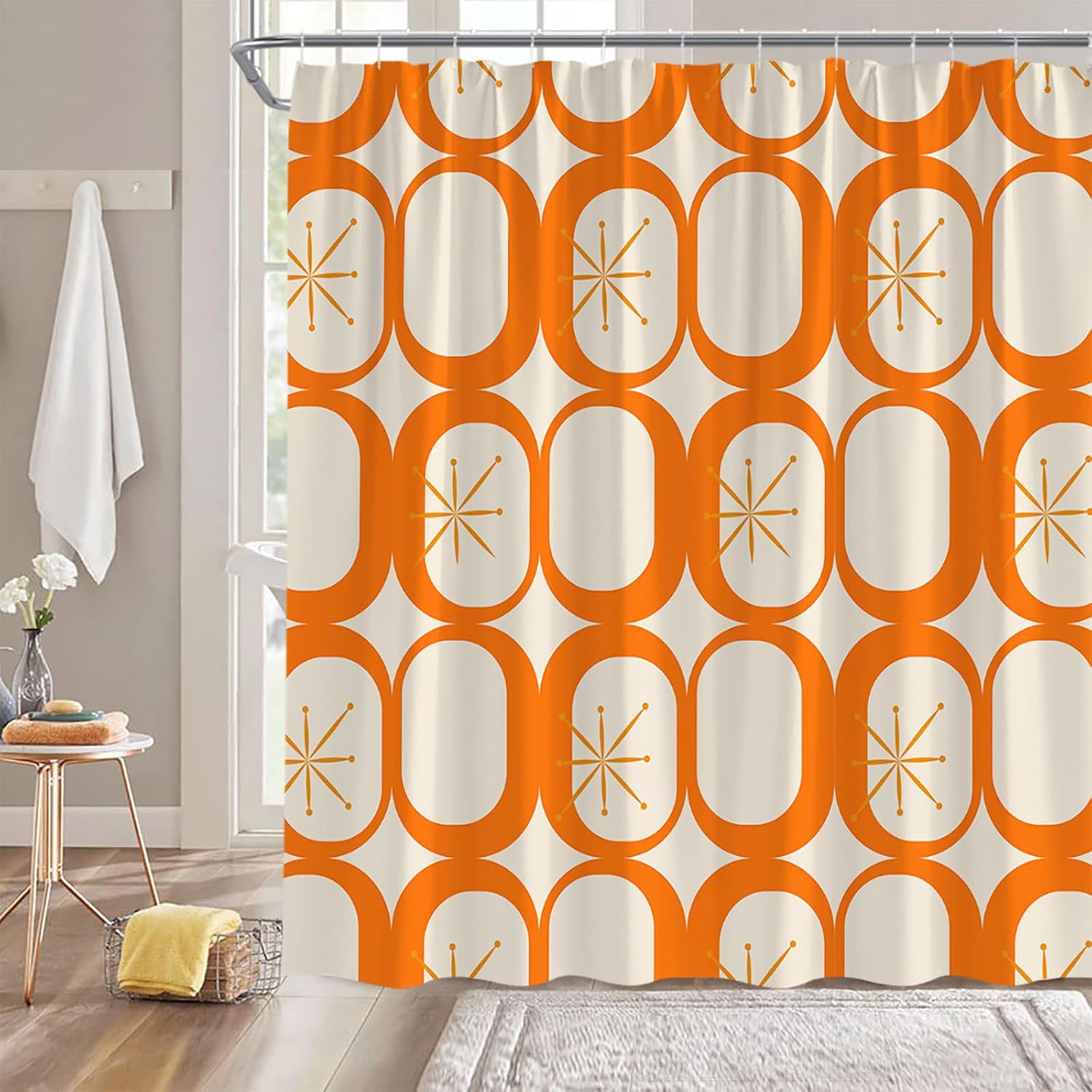 Mid Century Modern Shower Curtain 70x70 Inch Retro Atomic Orange Fabric with Hoo