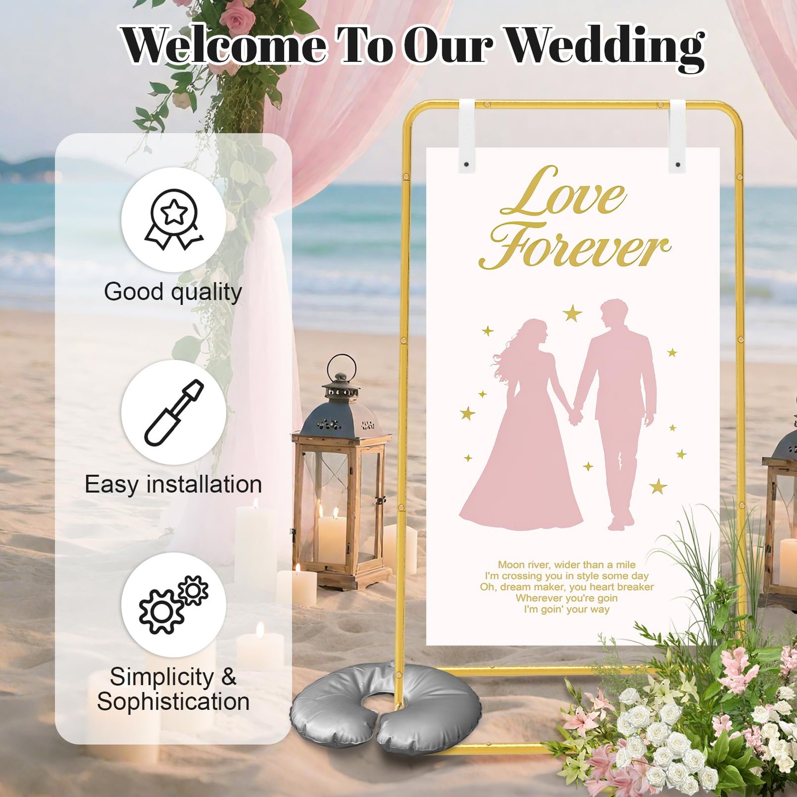 как выглядит Wedding Welcome Sign Stand, Welcome to Our Wedding Sign Holder with Anti-Tipp... фото