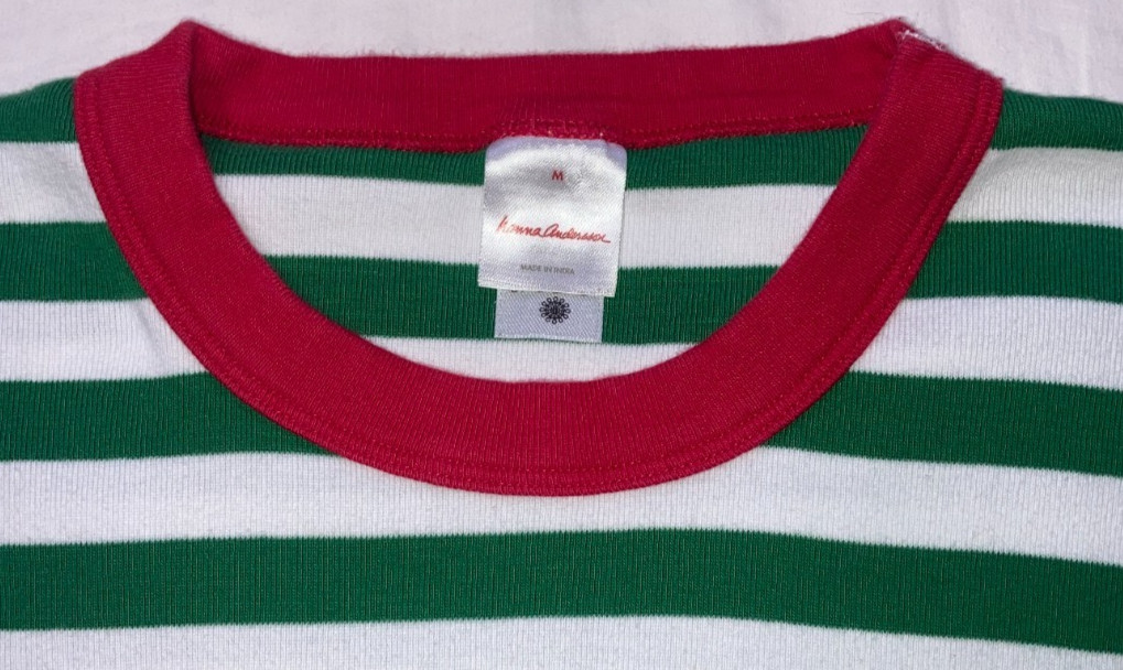 как выглядит Hanna Andersson Very Merry Stripe Adult Unisex Christmas PJ Pajama Top M Medium фото