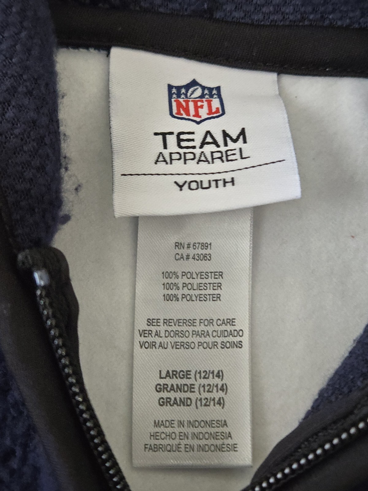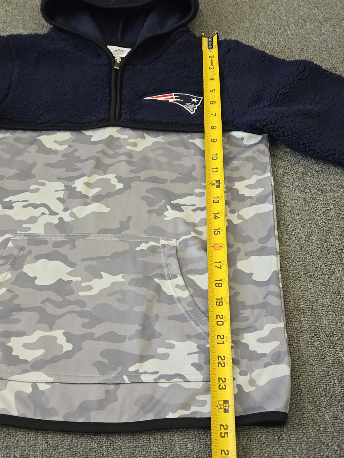 как выглядит New England Patriots NFL TEAM APPAREL Youth Large 12/14 Boys Hoodie 1/4 Zip фото