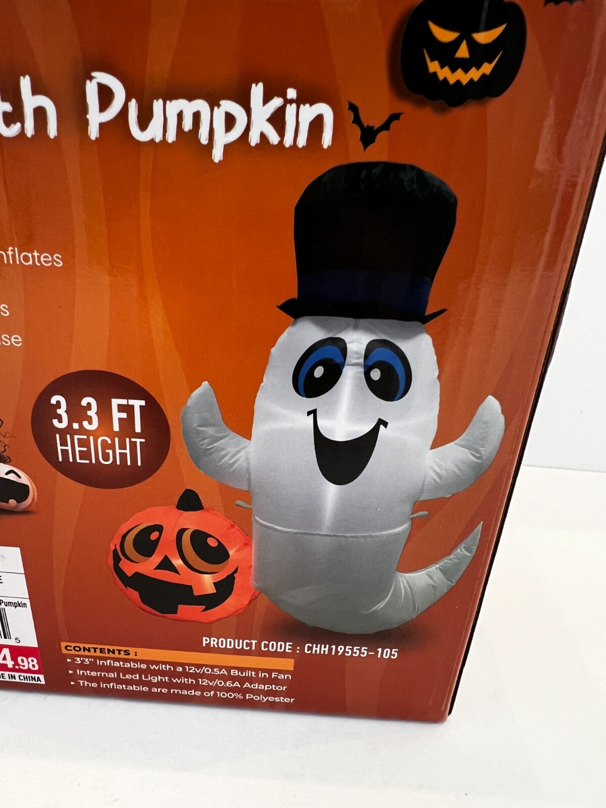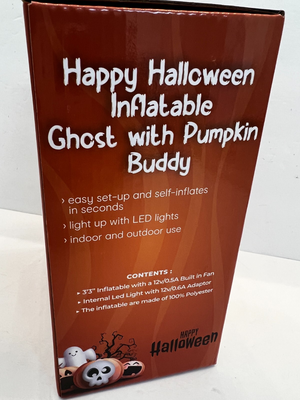 3 FT Inflatable Light Up Ghost Pumpkin Halloween Outdoor Decor LED Lights NEW