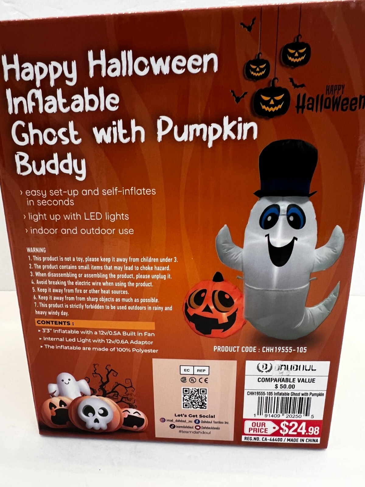 • 3 FT Inflatable Light Up Ghost Pumpkin Halloween Outdoor Decor LED Lights NEW