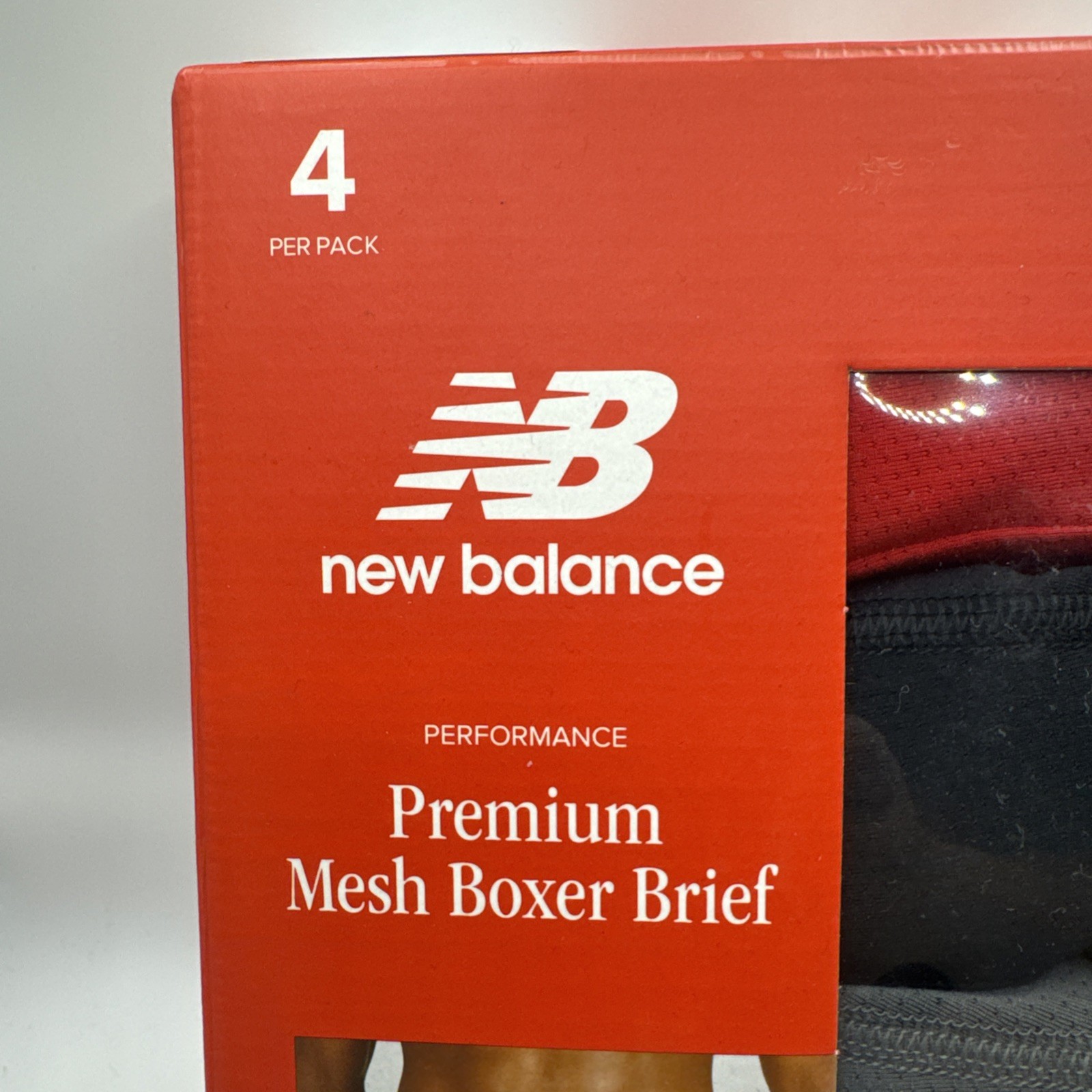New Balance 4-Pack Mens Premium Mesh Boxer Briefs XL 40-42 Black/Red/Gray/Blue