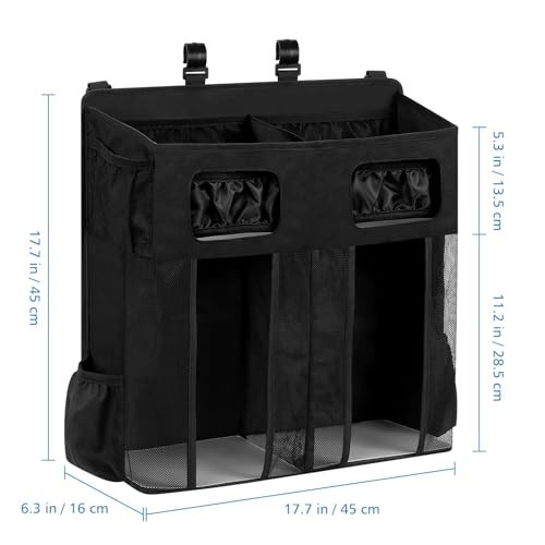 Diaper Organizer Caddy for Changing Table Crib - Hanging Storage Solution, Bla