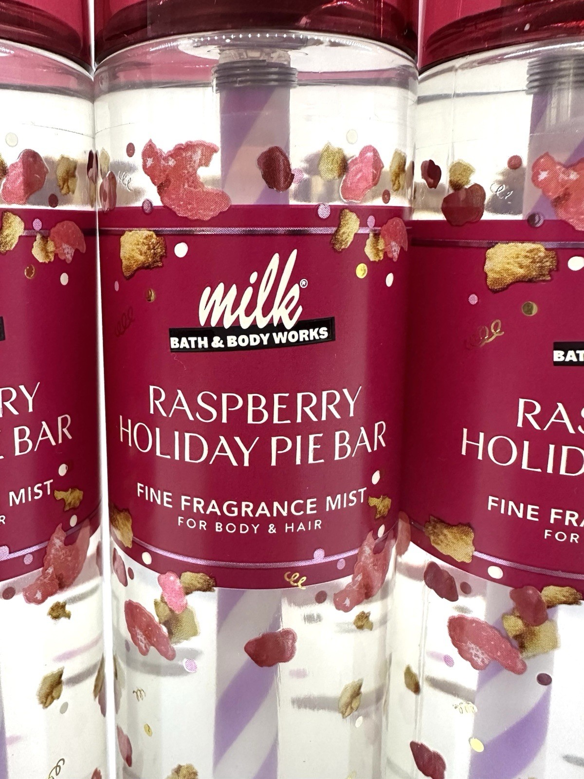 3 BATH BODY WORKS RASPBERRY HOLIDAY PIE BAR FINE FRAGRANCE MIST HAIR SPRAY 8OZ