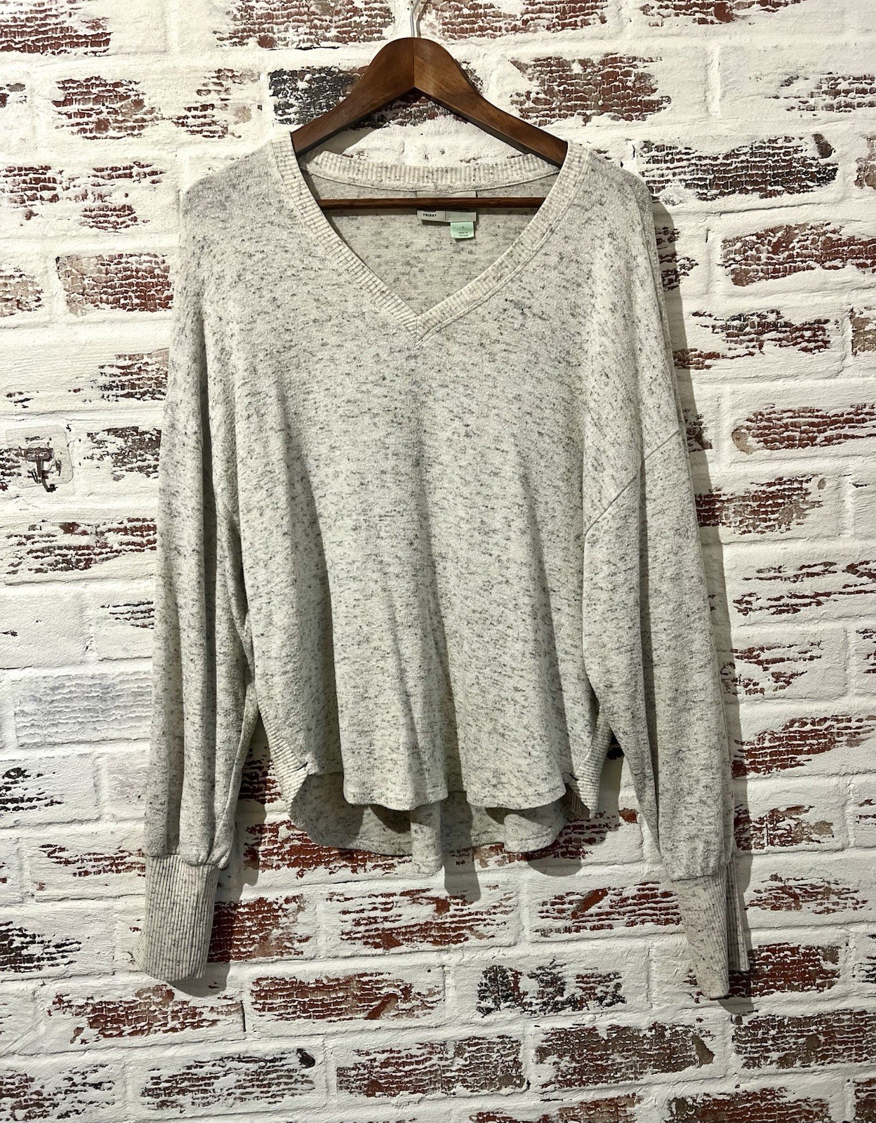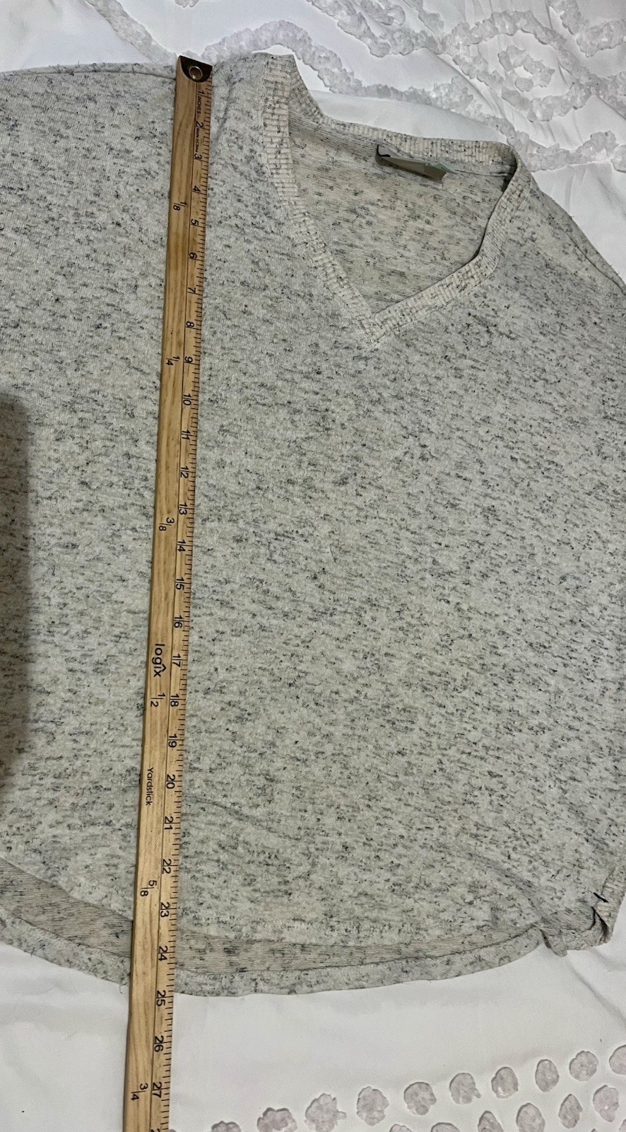 как выглядит Saturday Sunday by Anthropologie V-neck Sweater Marled Long Sleeves Beige Sz S фото