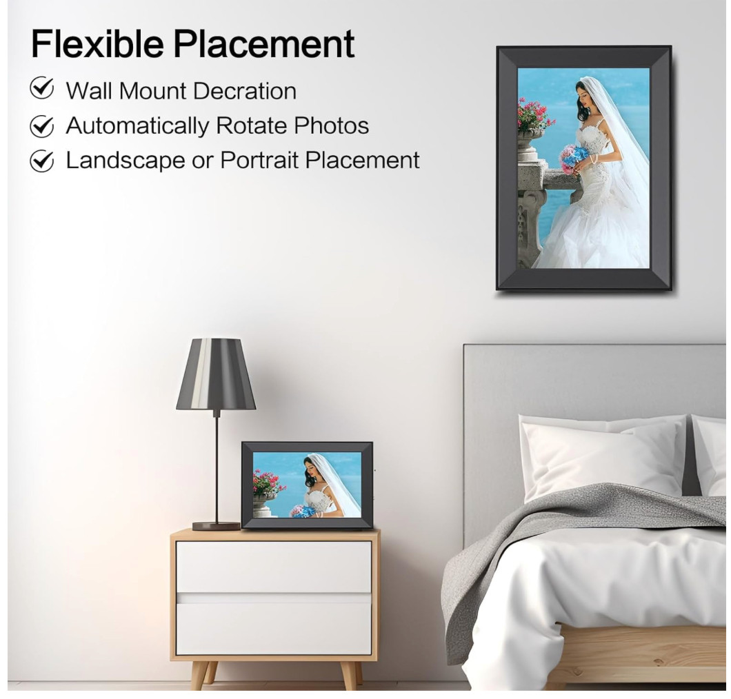 как выглядит Digital Picture Frame, FRAMEO 10.1 Inch Smart WiFi Digital Photo Frame with IPS фото