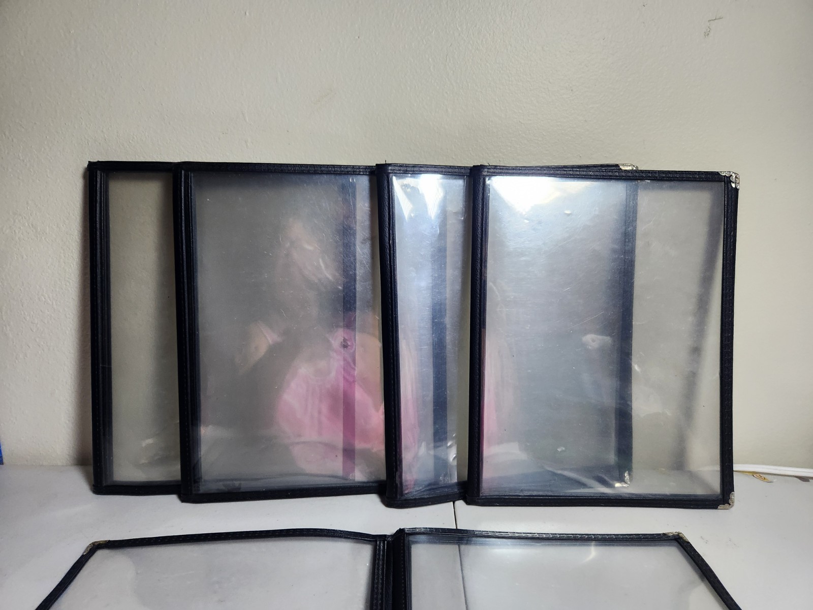 как выглядит Menu Covers Lot Of 5 3 Page Clear View Black Trim Events Large Sized CY фото