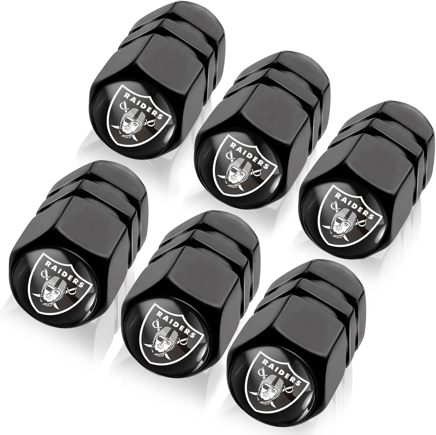 6Pack Valve Stem Caps for Raiders, Sport Fan Tire Air Valve Cover with Rubber Se