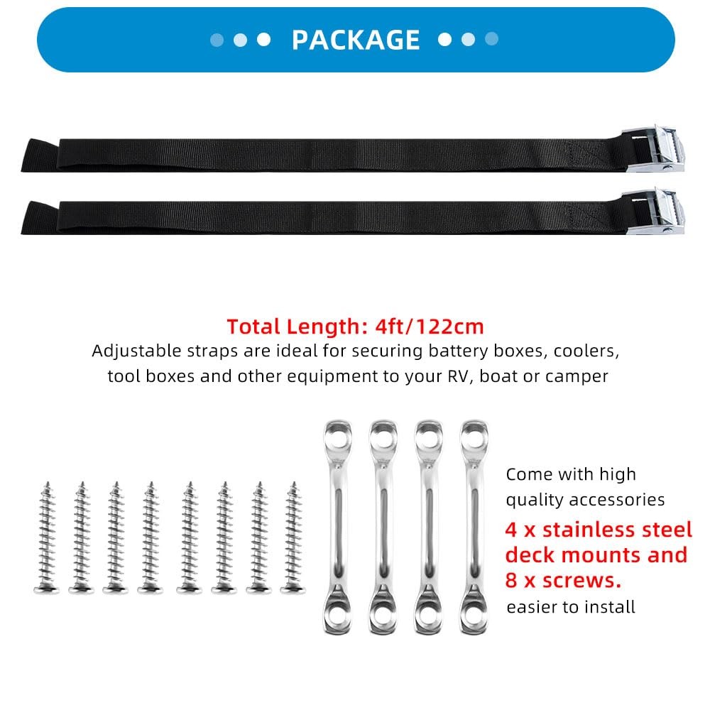 1 x 4ft Battery Tie Down Straps for Boats,Battery Hold x 1 inch, 2 PCS