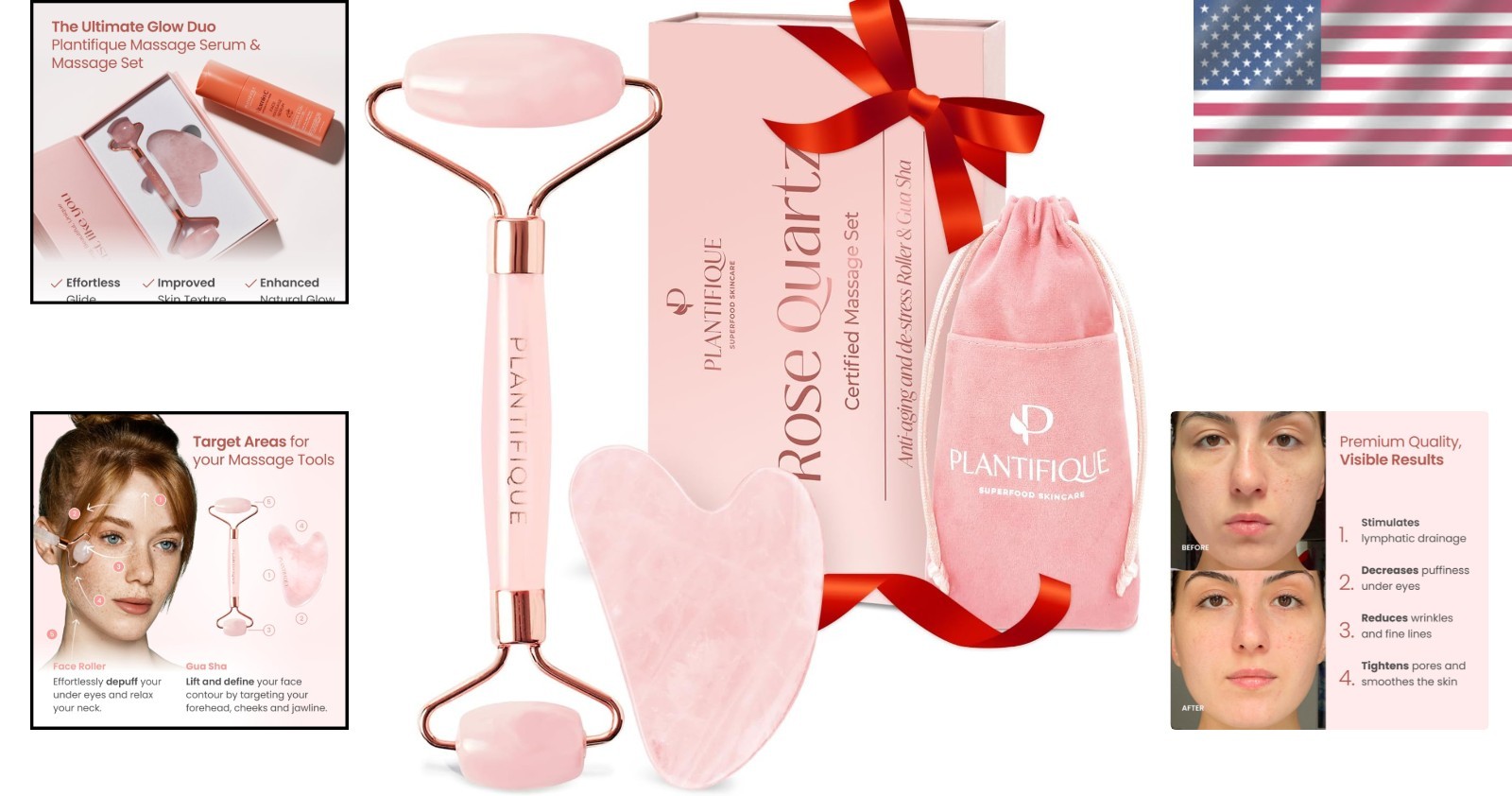 как выглядит Rose Quartz Face Roller Gua Sha Set фото