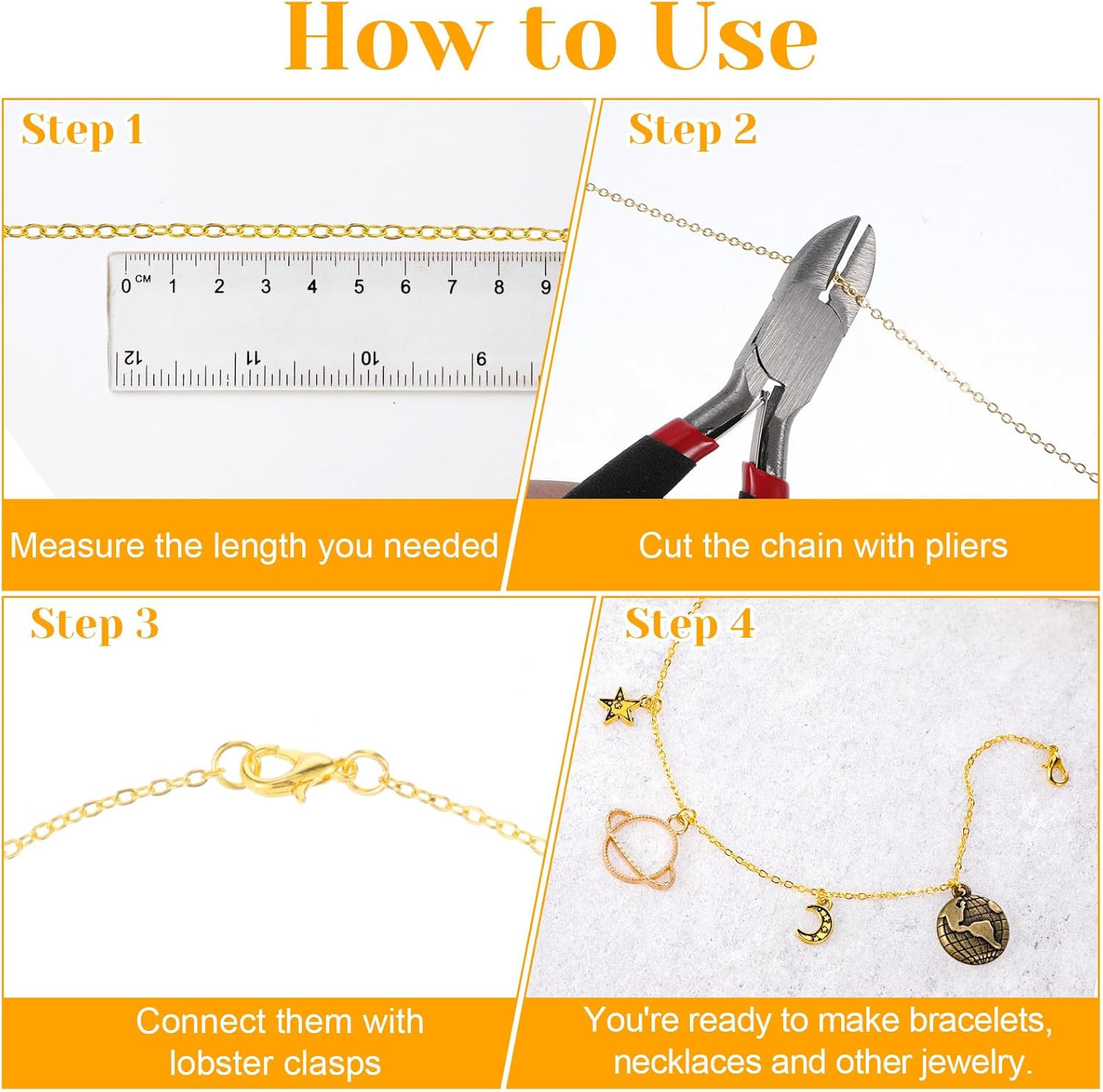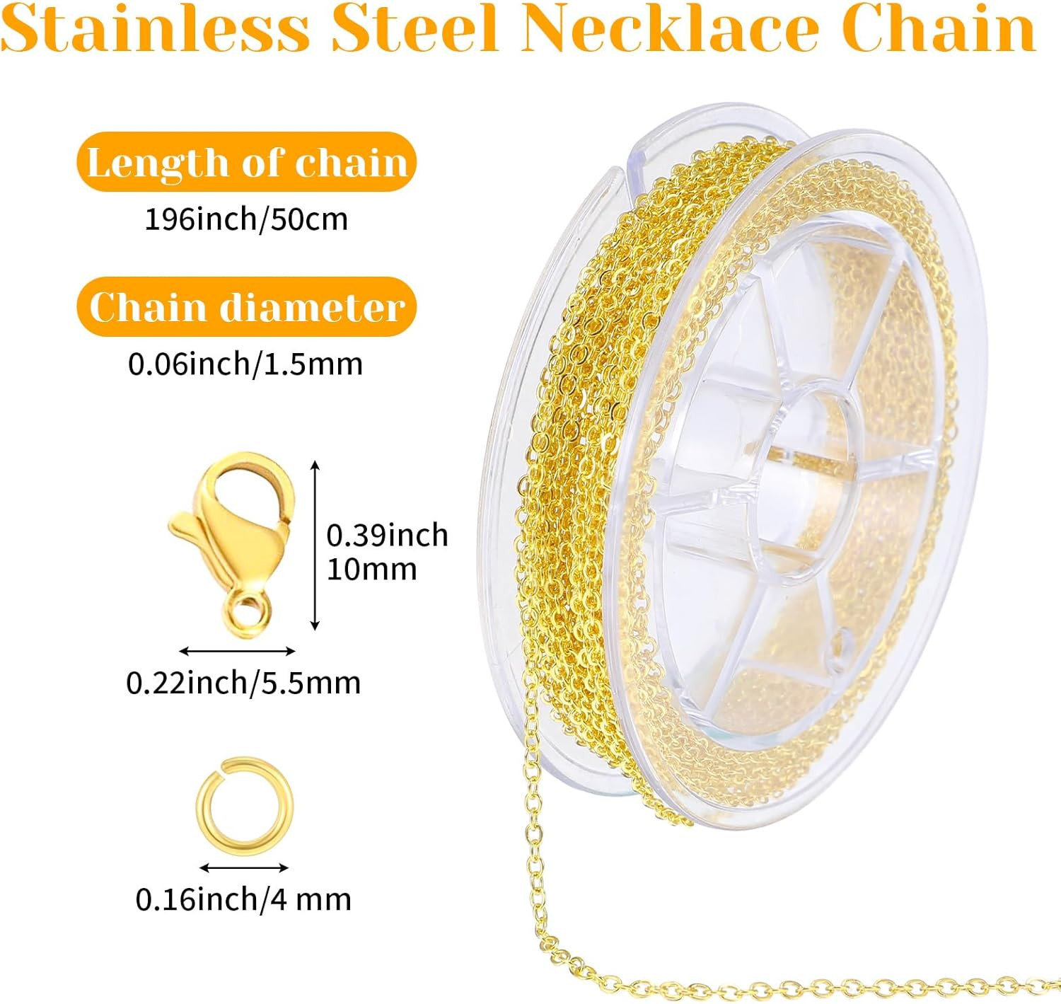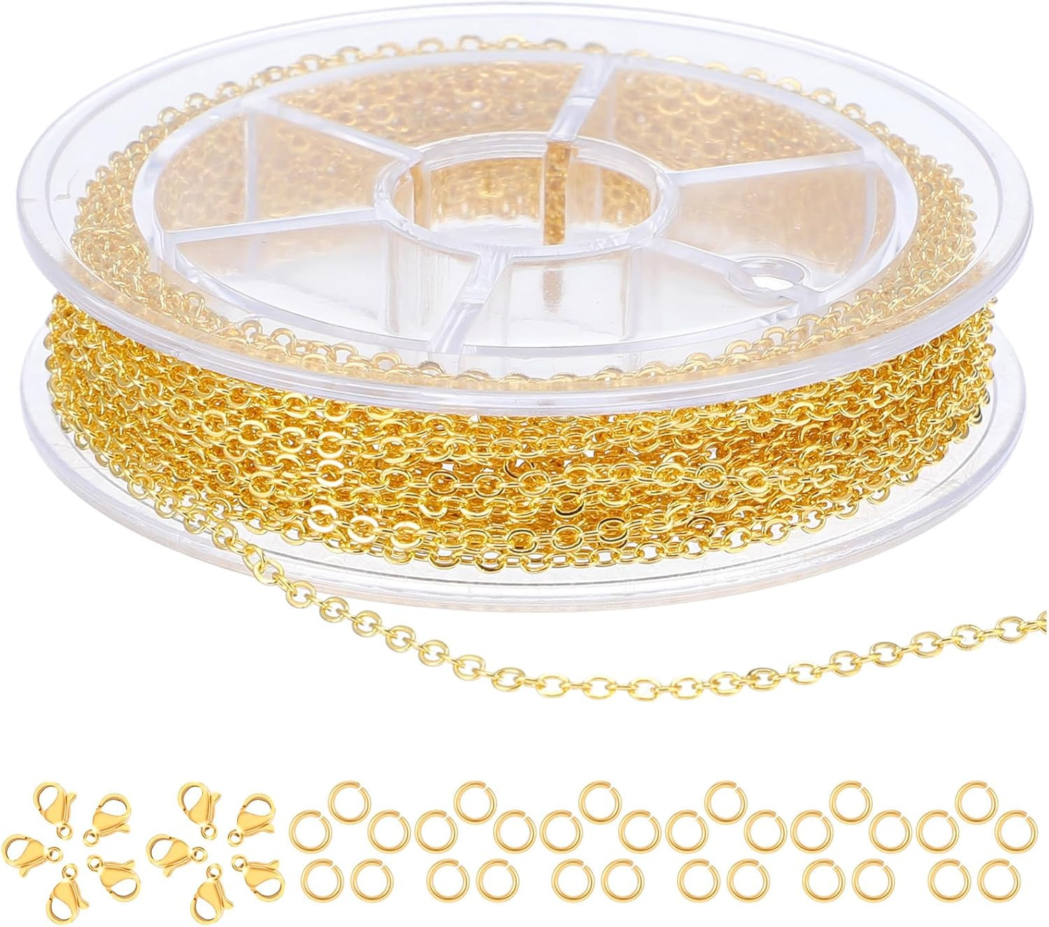 9.8Ft Necklace Chain for Jewelry Making, Gold Plated Stainless Steel Link Cable