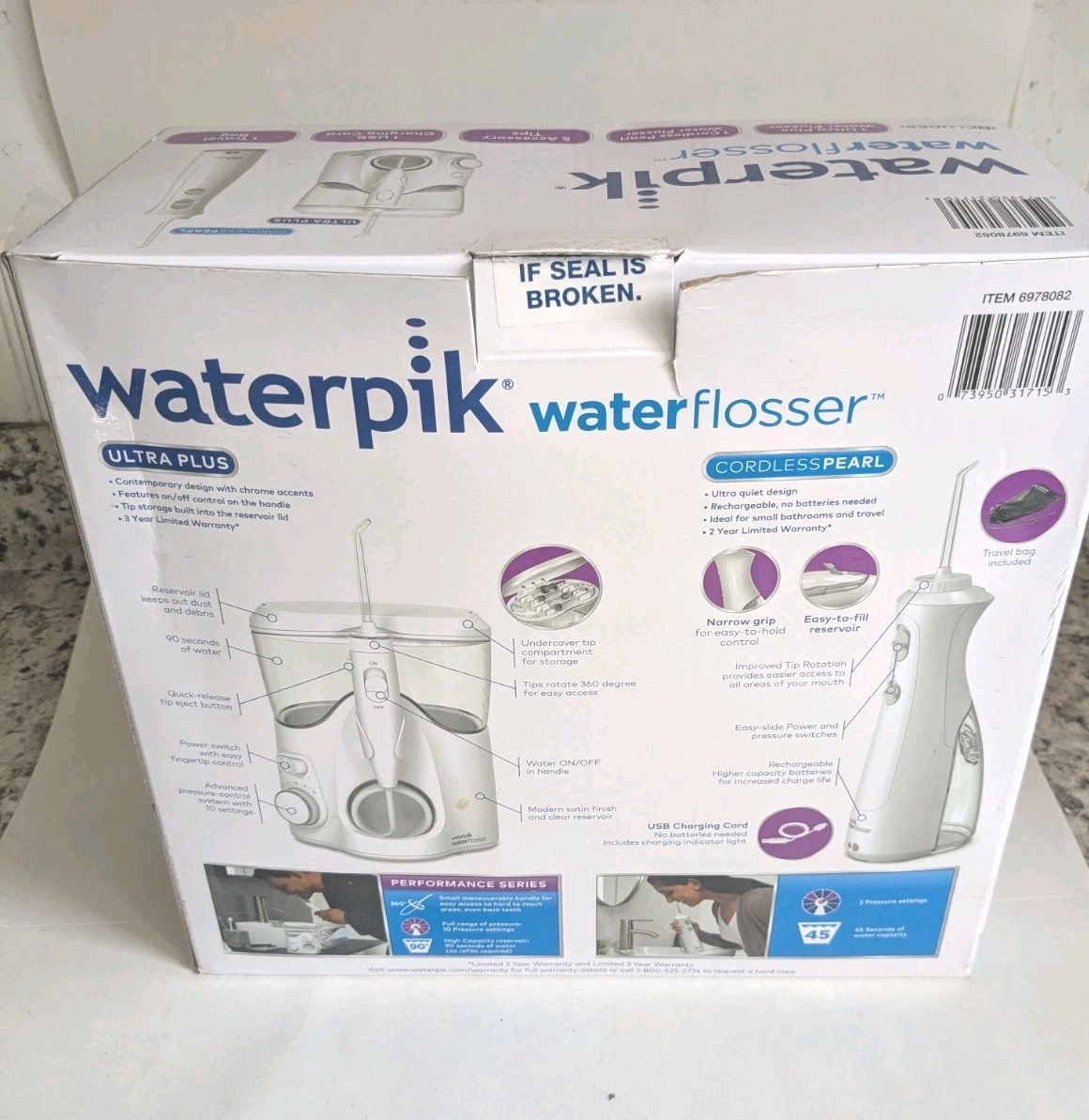 Waterpik Water Flosser Ultra Plus Cordless Pearl Water Flosser Combo Pack