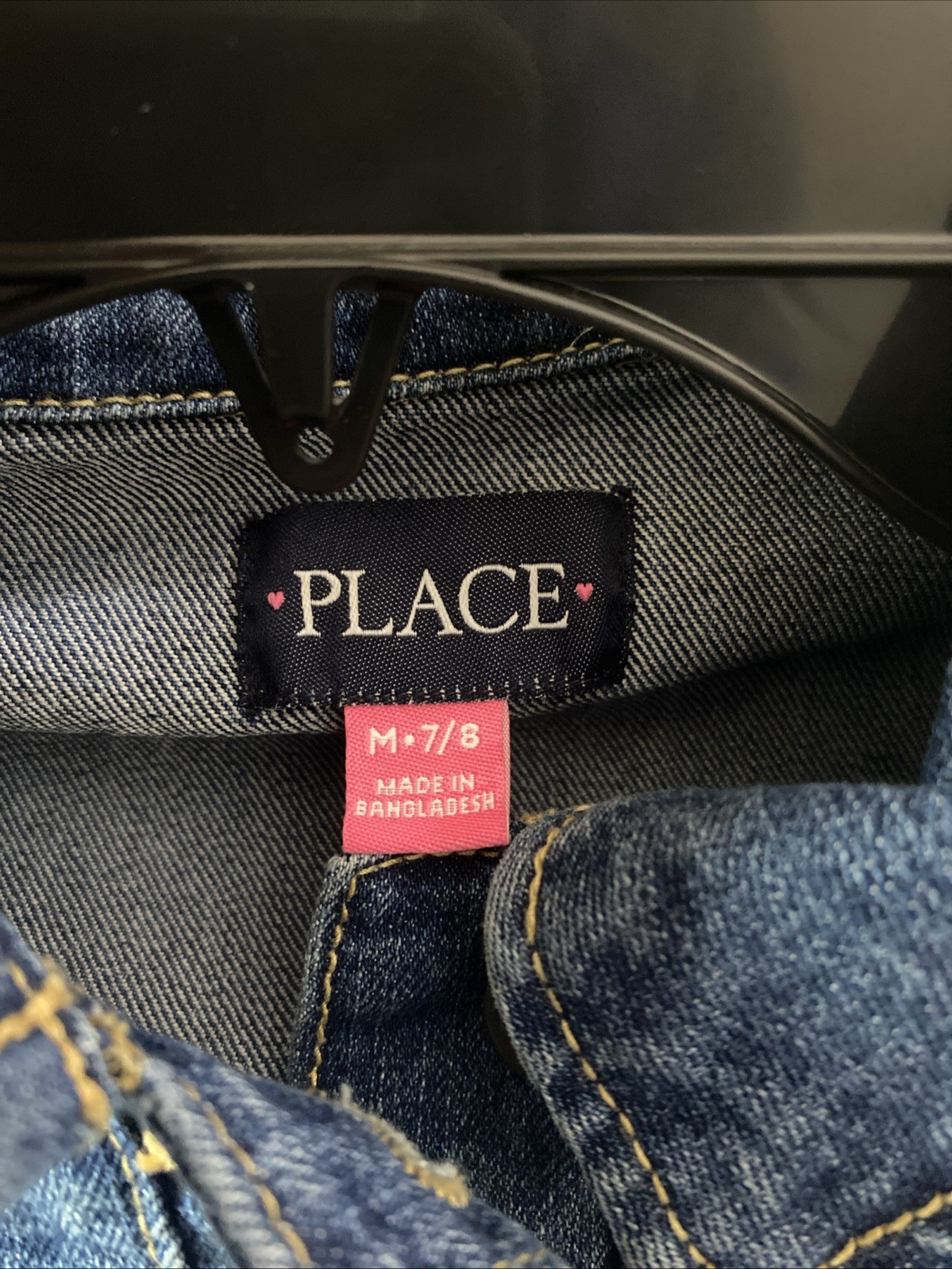 The Children s Place Girls Denim Jean Jacket Heart Buttons Blue 7/8 EUC