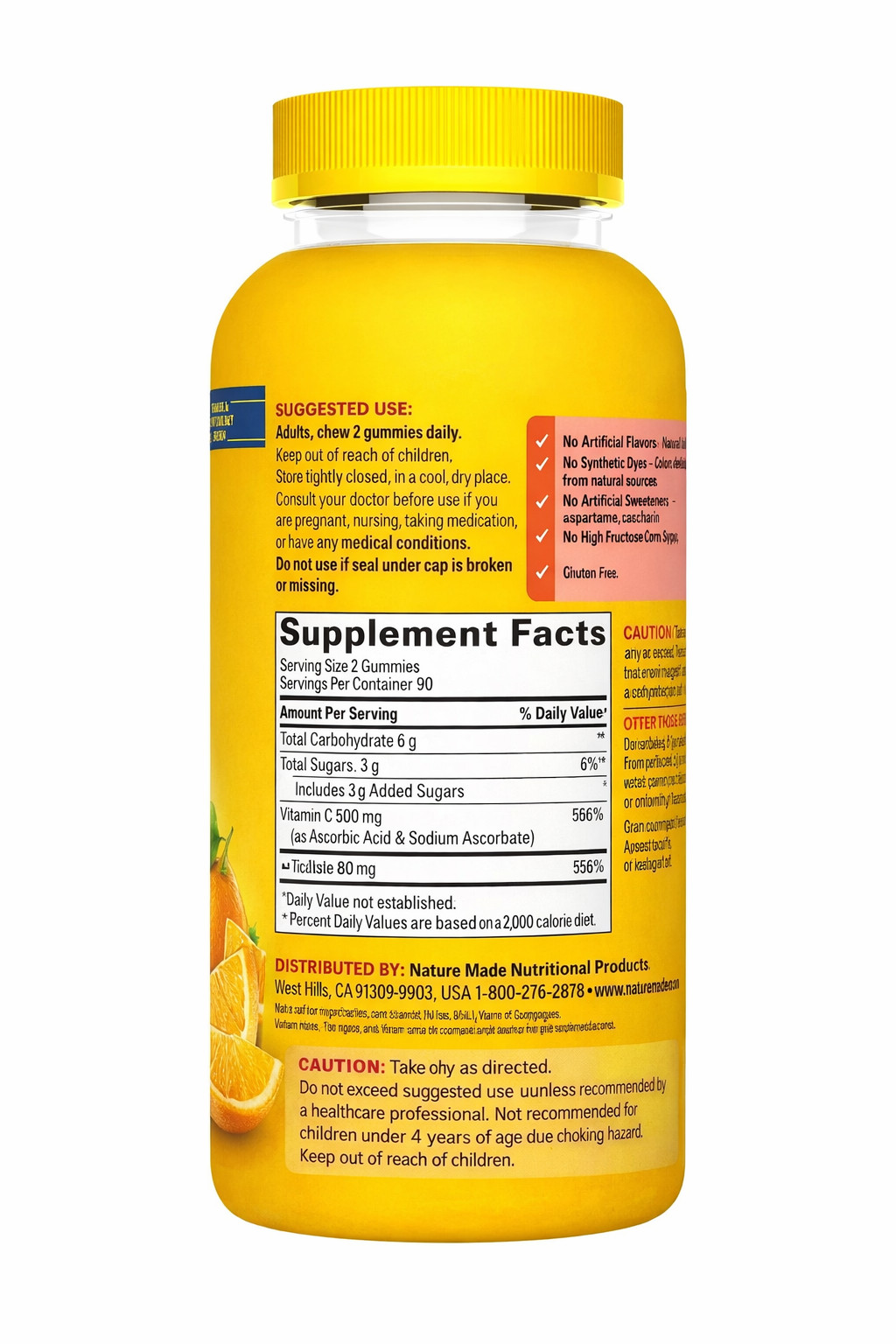 Nature Made Vitamin C 500 mg Gummies, 180 Ct, Immune Support Dietary Supplement