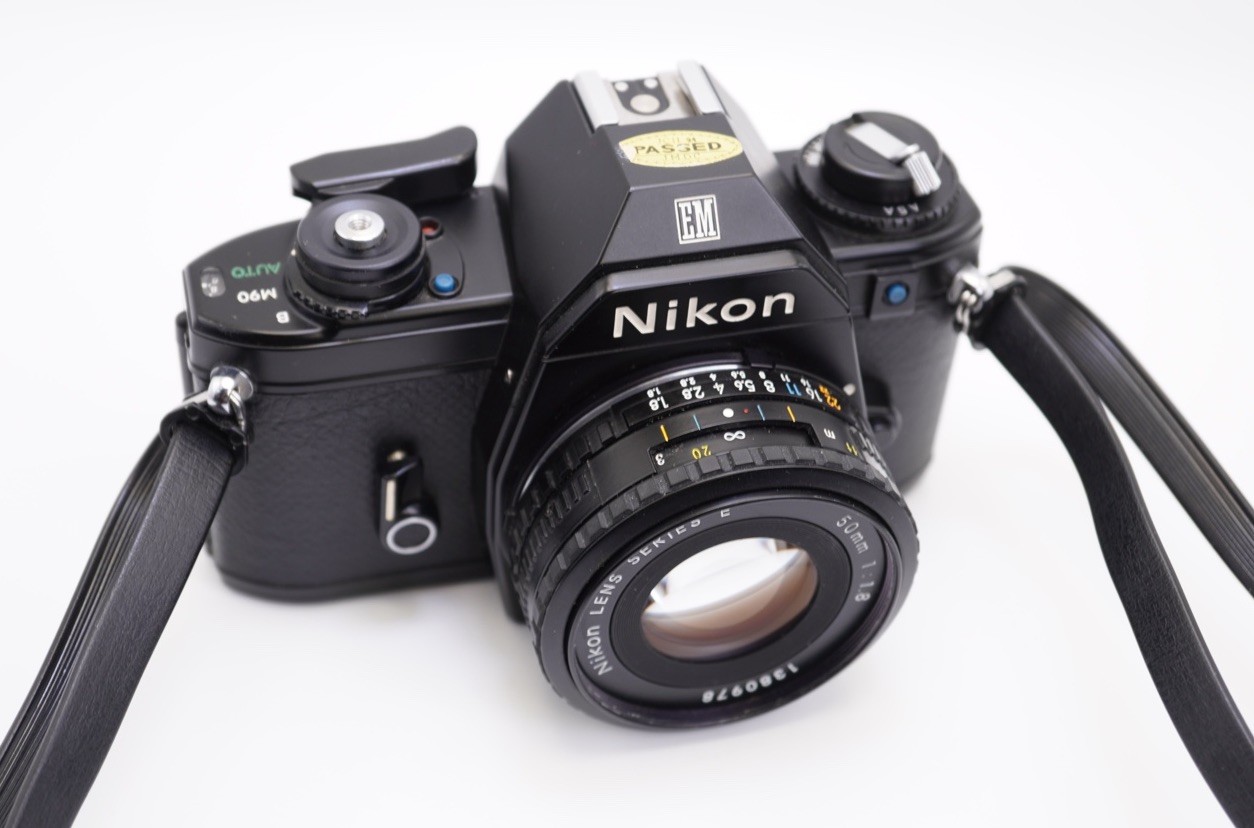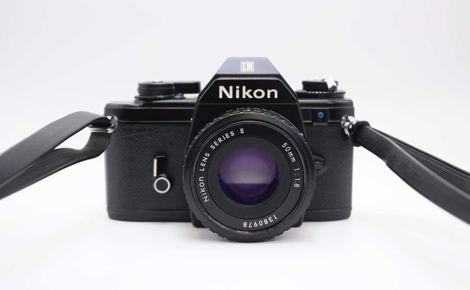 Nikon EM 35mm Film Camera Kit 50mm f/1.8 Series E Vivitar 550FD Flash Case