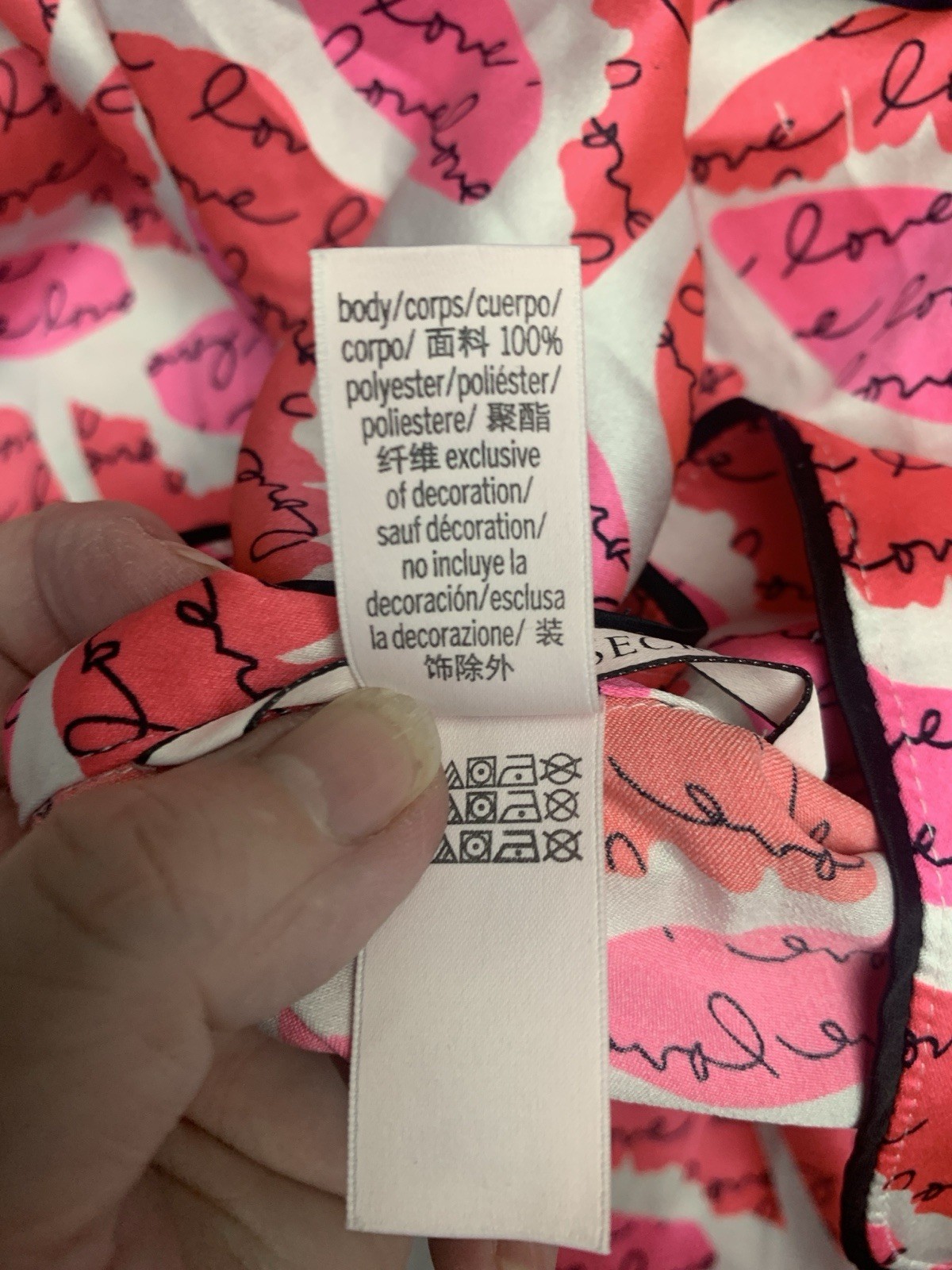 как выглядит Victoria s Secret Pink Slinky Pajama Shirt MEDIUM Button Up Sh Sleeve Lips Love фото