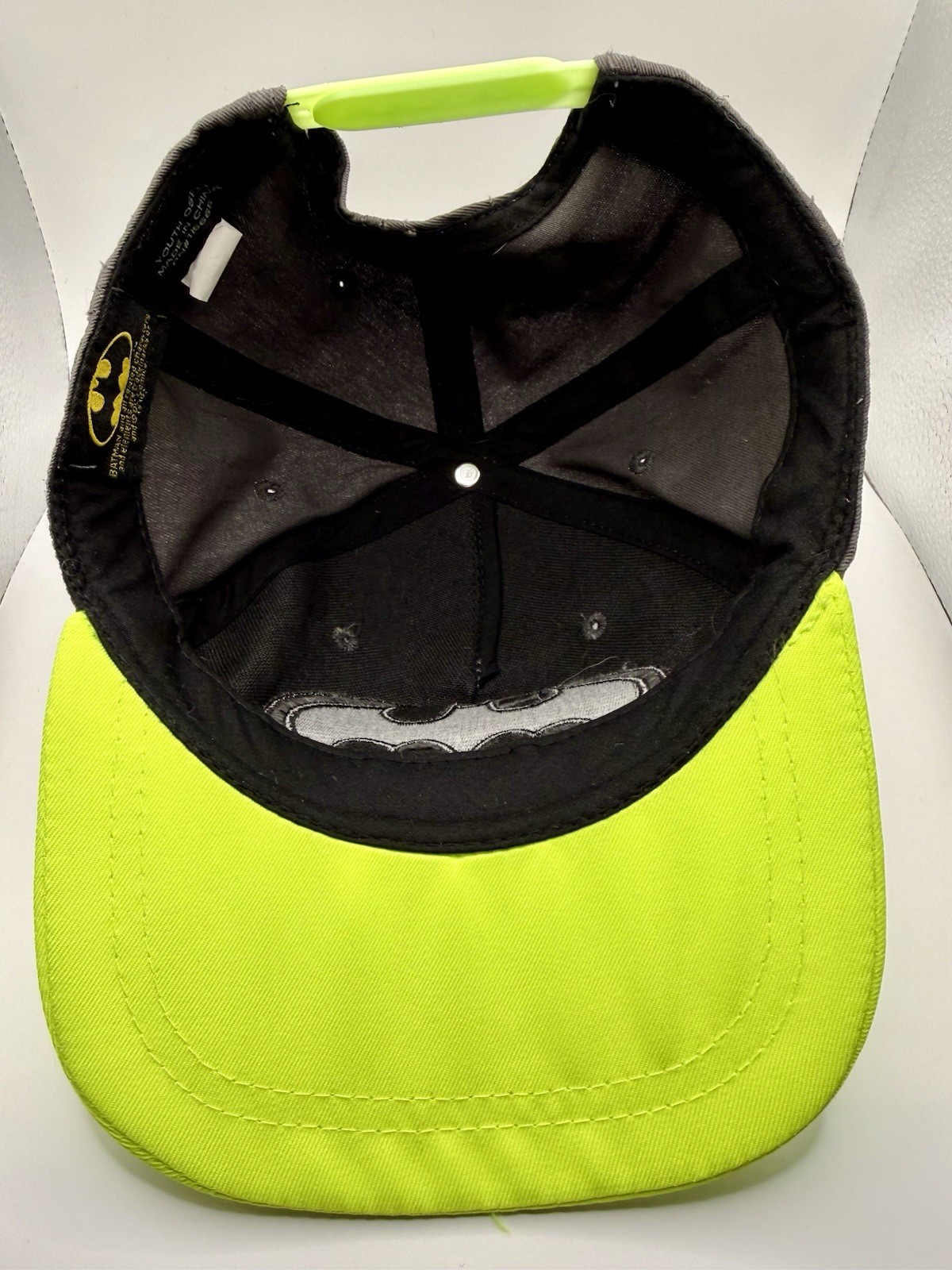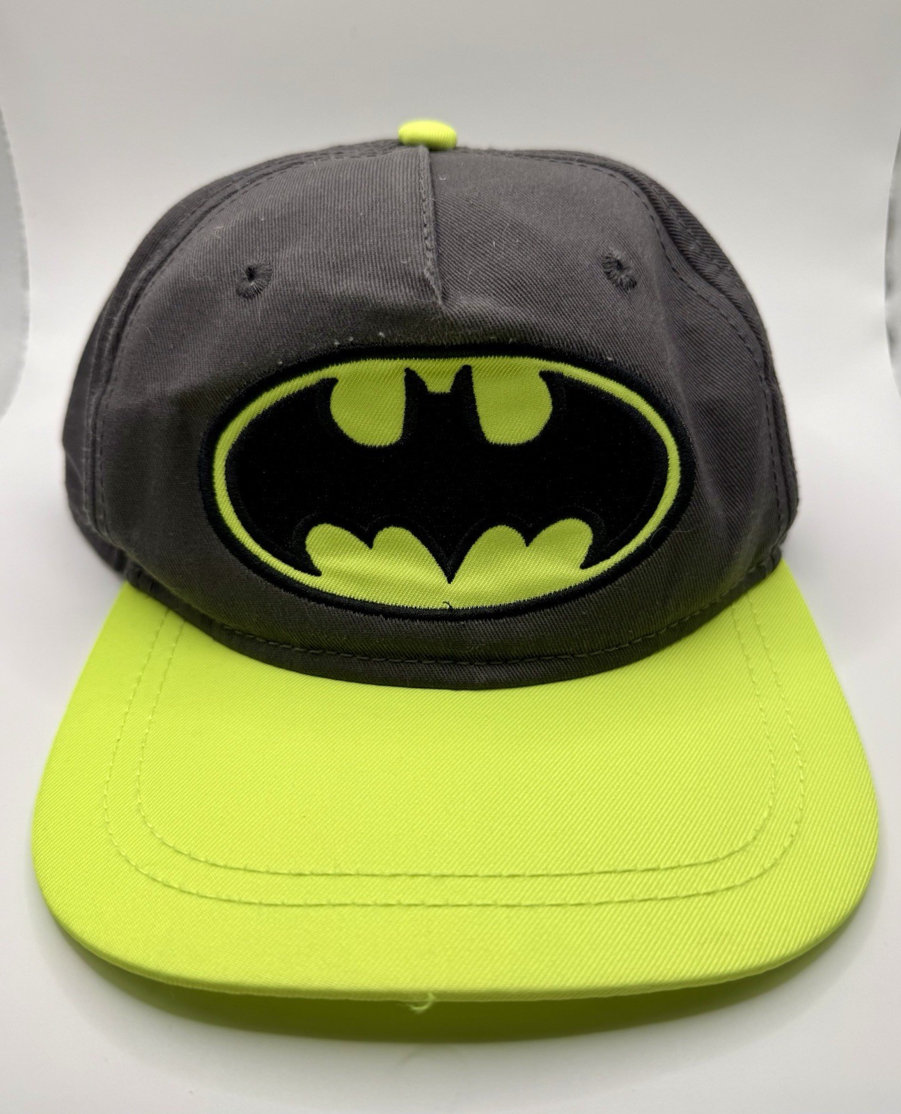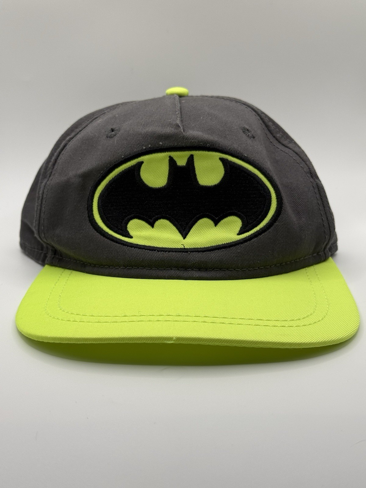 Batman Logo DC Youth OSFM Neon Yellow Gray Baseball Cap Snapback Hat