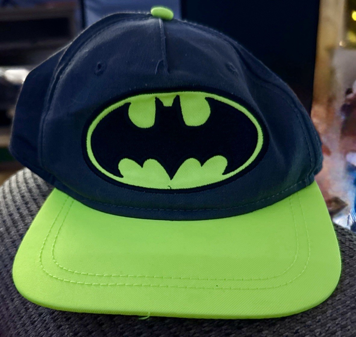 как выглядит Batman Logo DC Youth OSFM Neon Yellow Gray Baseball Cap Snapback Hat фото