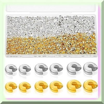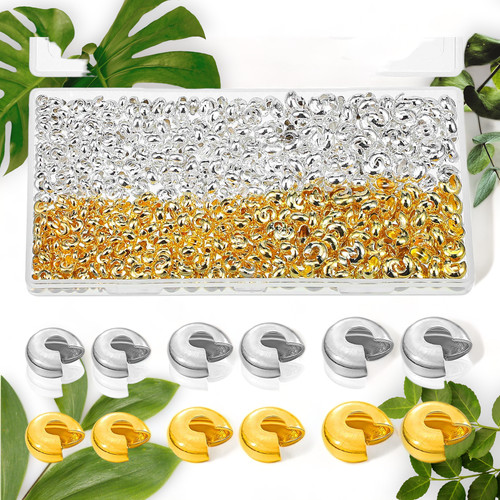 как выглядит 600 Gold and Silver Half Round Crimp Bead Covers фото